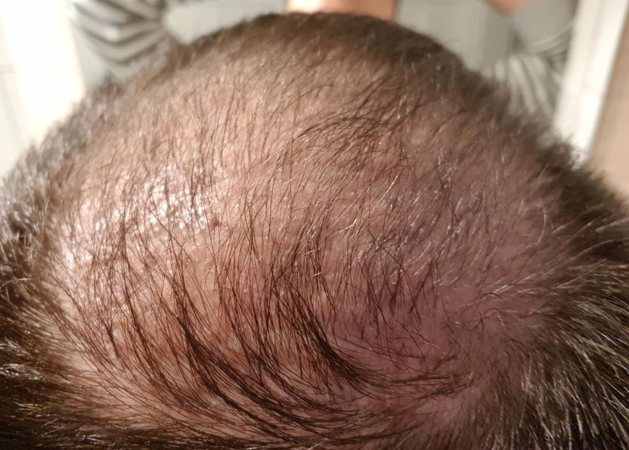Die Ränder rechts und links sind dünner als mein natives Haar. Irgendwo hast du Recht aber es ist nicht so dass ich komplett kahle Stellen überkämme (siehe aktuelles Foto). Vorallem die Geheimratsecken sind schön dicht und in der Summe wirkt alles bis auf die Tonsur dicht.