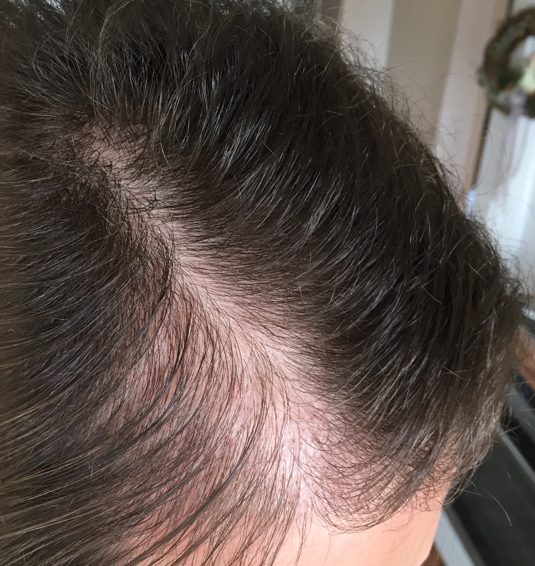 Heute sind es 3 Tage nach der Behandlung als die Bilder aufgenommen wurden. Eine weitere kleinerer Narbe über der FUT Narbe, die ich mal durch einen Sturz bekam, wurde auch gleich mit einigen Grafts bepflanzt.