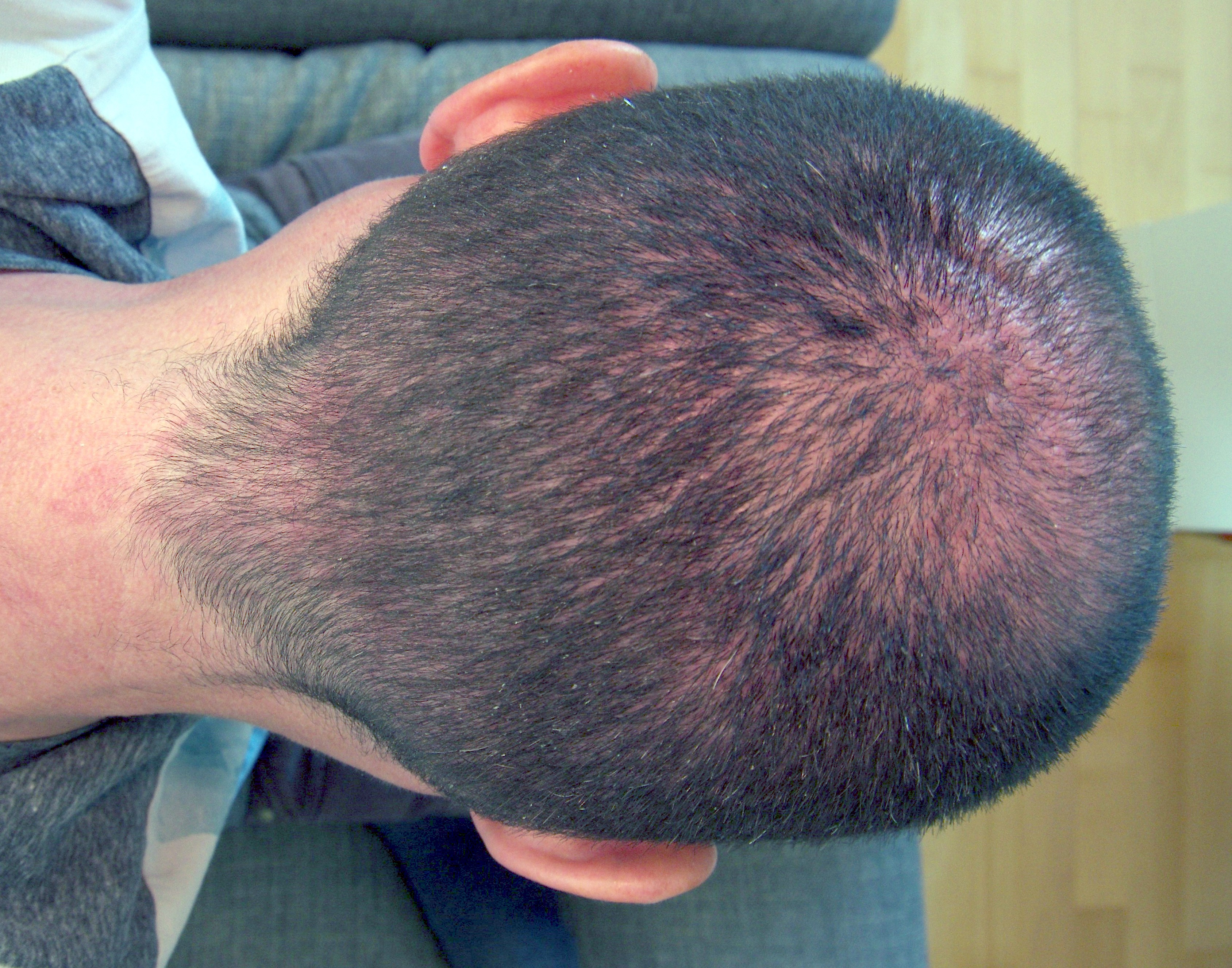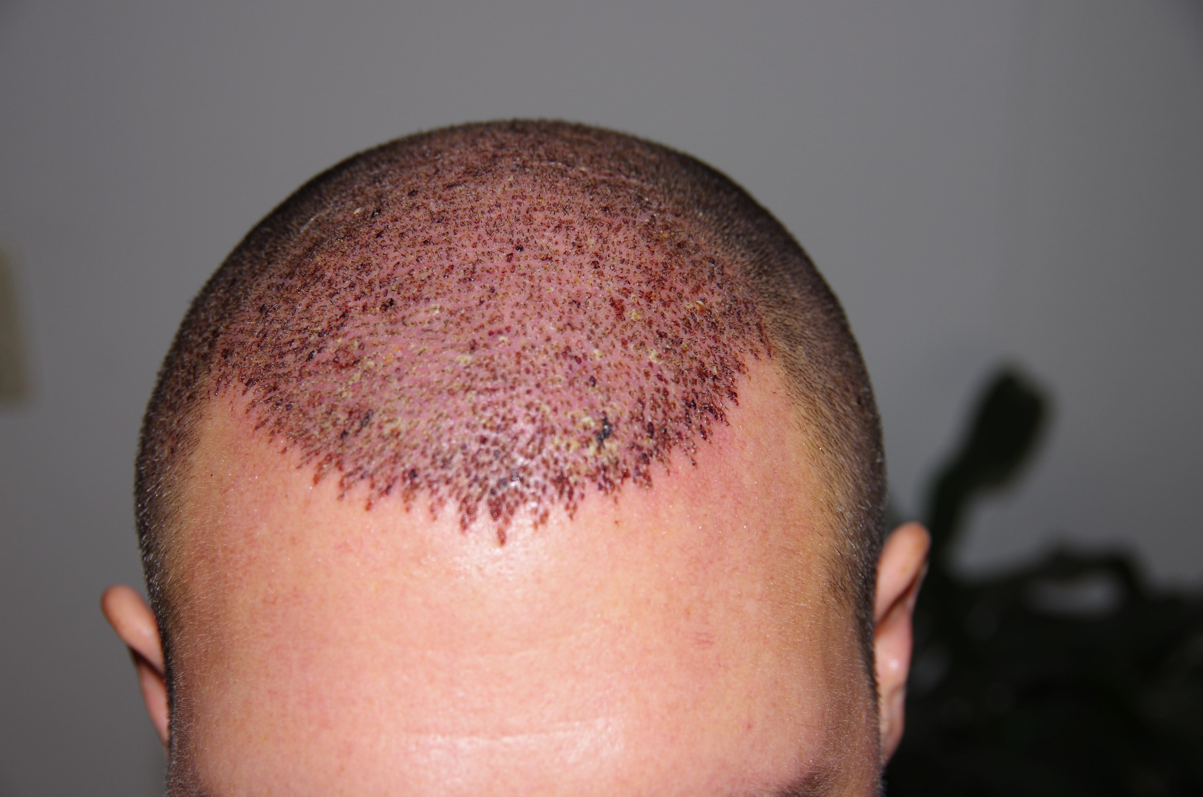 10 Tage nach der OP haben sich auf dem Transplantiertem Bereich die Krusten/Schorf gelöst und haften jedoch weiterhin an den eingesetzten Haaren. Vereinzelnt verliehr ich beim Waschen sogar Haare was zu erwarten ist.