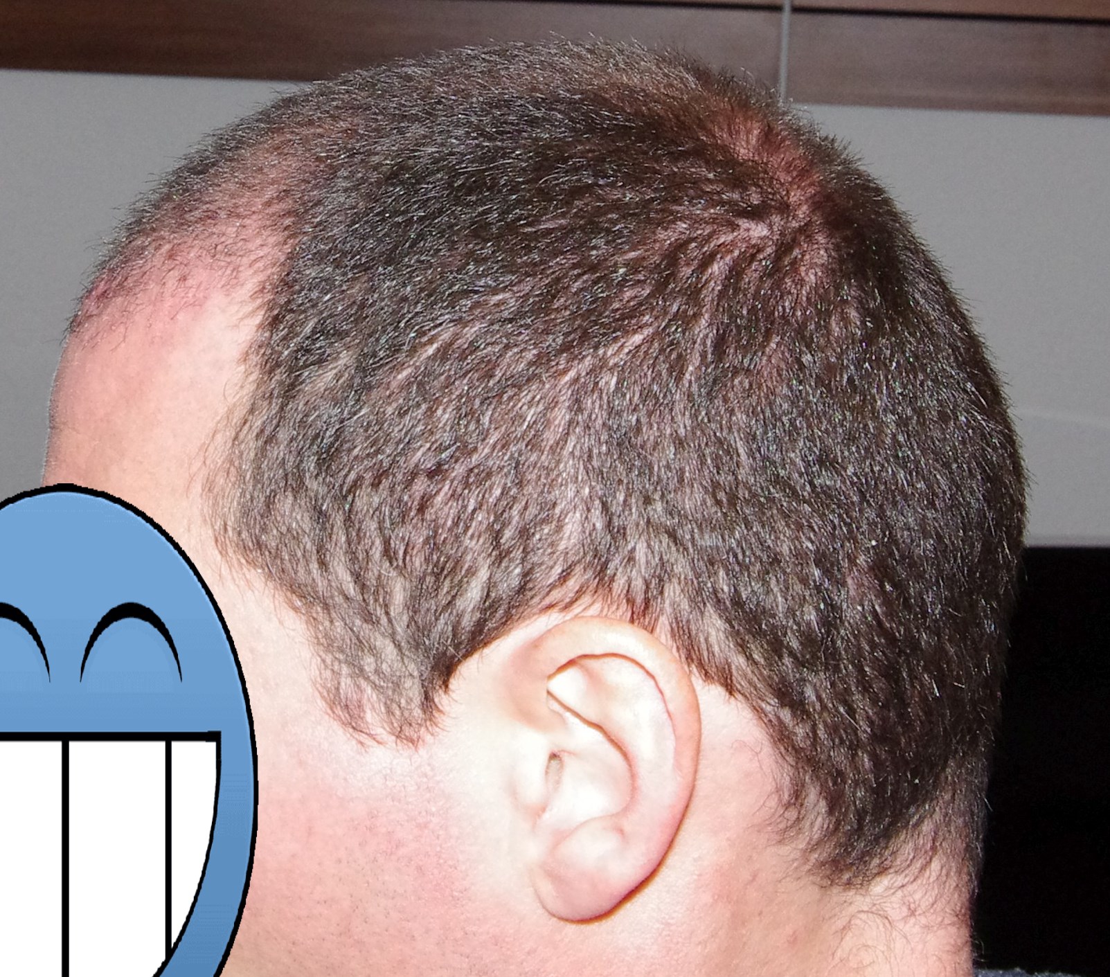 Hier schonmal ein Beispiel nach einem Jahr. Die Haarlinie des Patienten wurde rekonstruiert.
