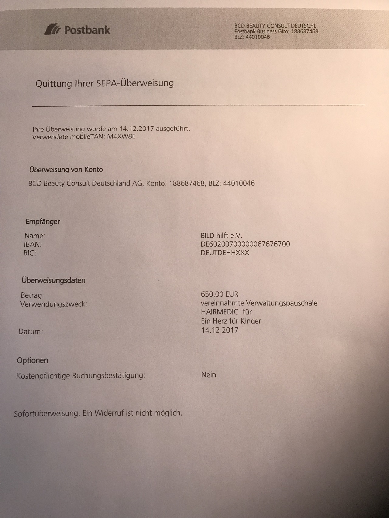 Nun bin ich gespannt ob Hairmedic sich auch hier so proffessionell und kundenorientiert zeit wie bisher und die Sache zügig bearbeitet. Ich denke, dass so eine Erstattung innerhalb von 14 Tagen zu bewerkstelligen sein sollte, schließlich sollte ich ja auch die Anzahlung innerhalb von 5 Tagen leisten.