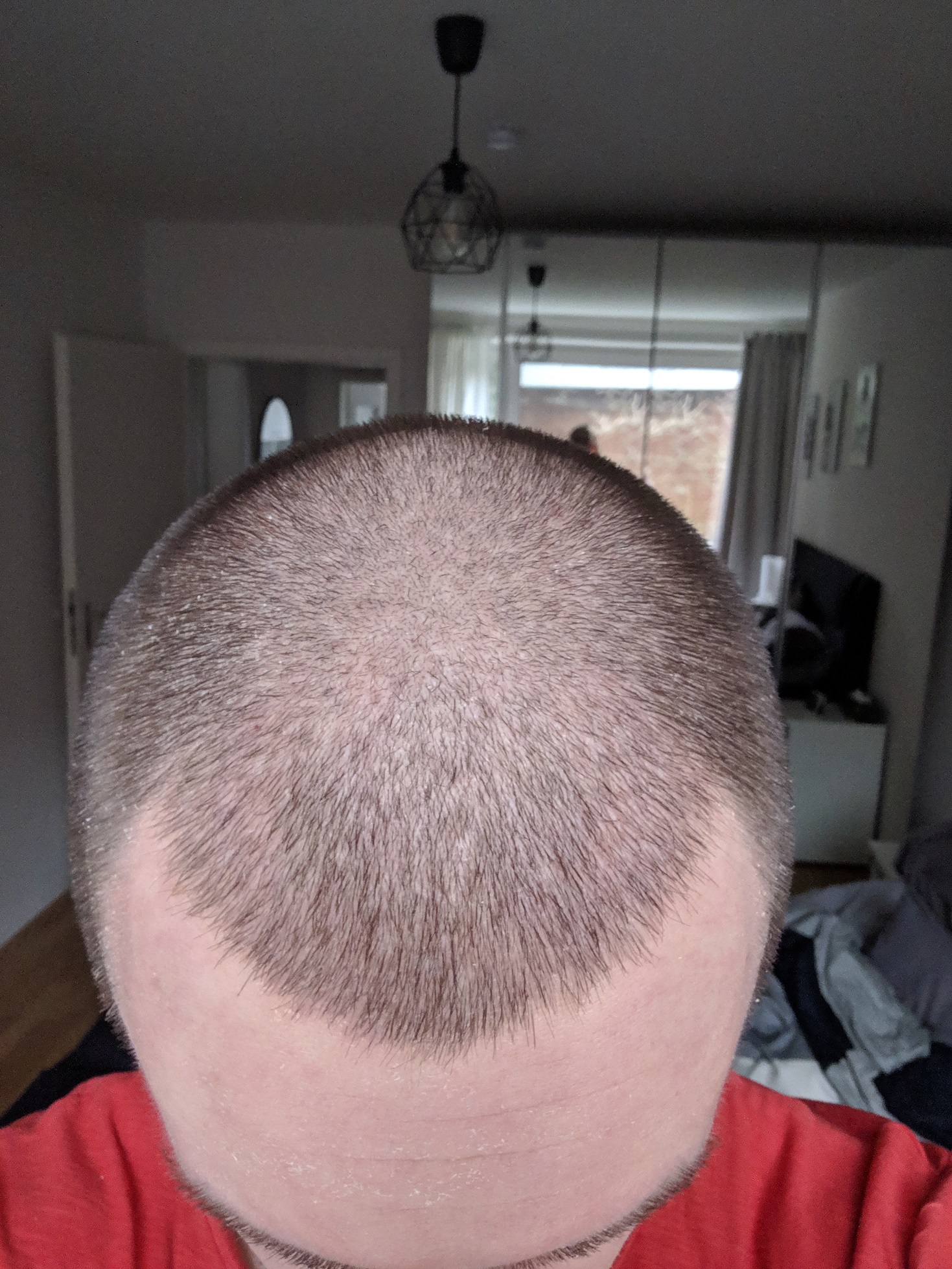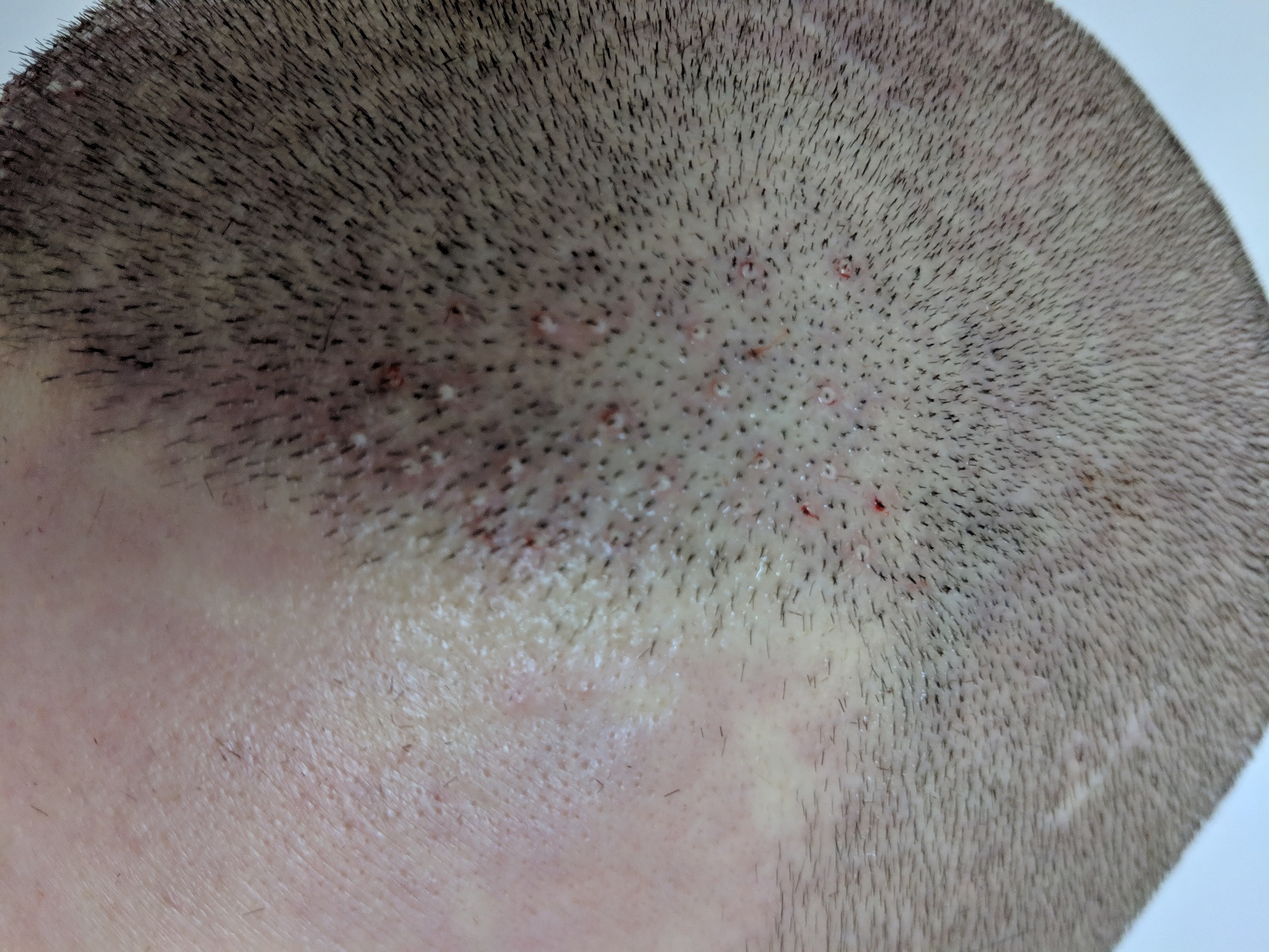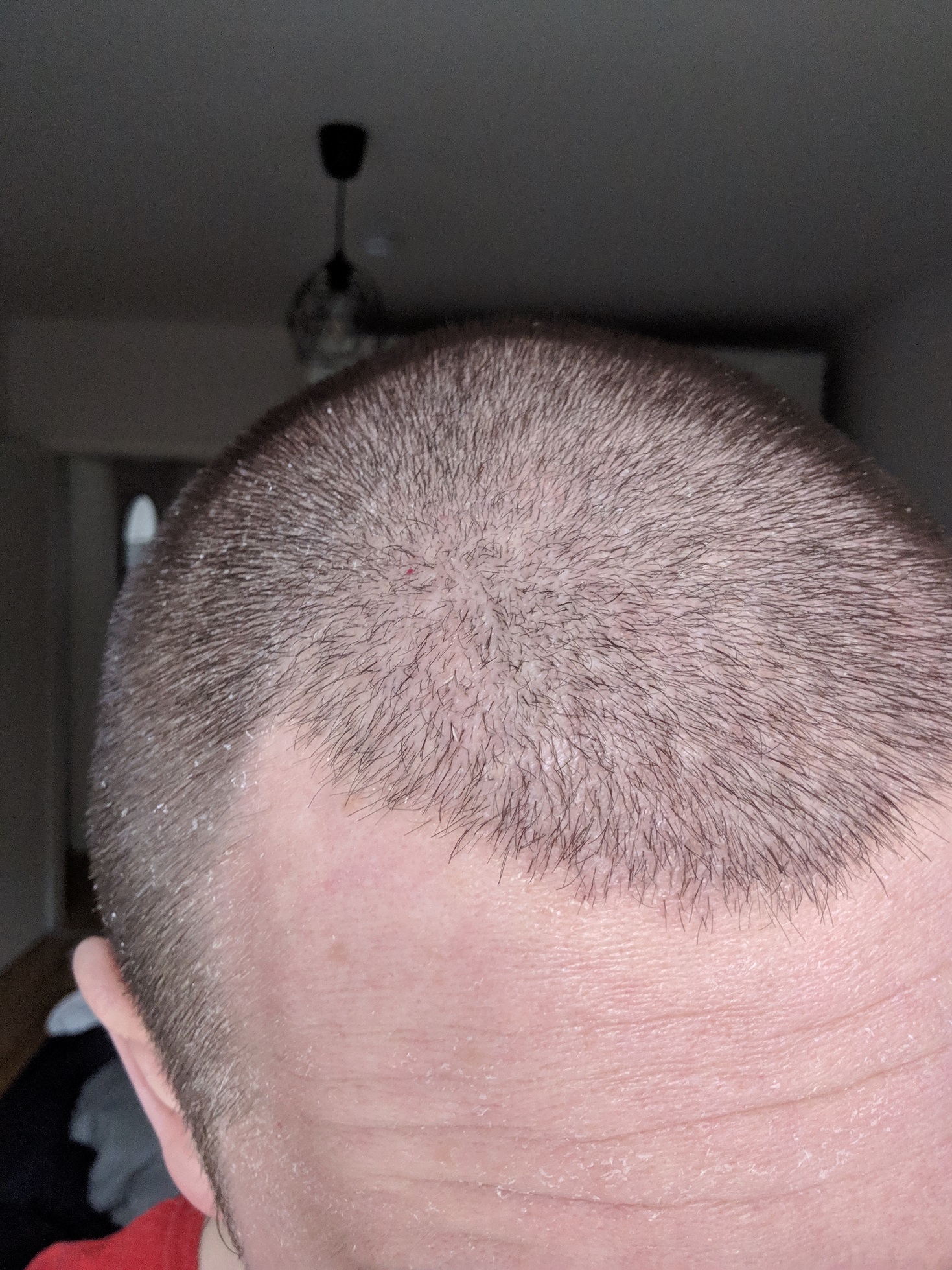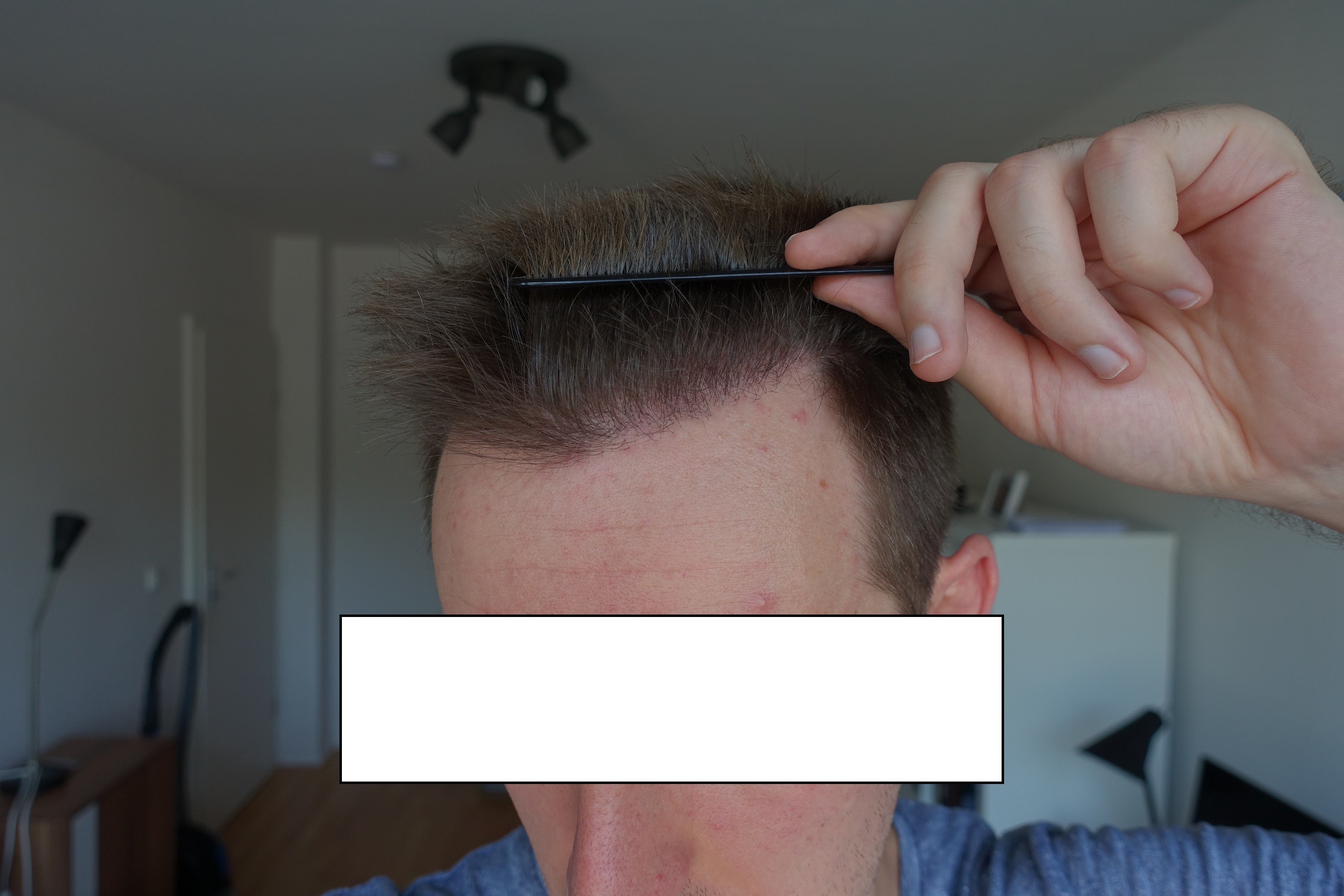 Mit den Ekzemen sind ja wie beschrieben einige Haare ausgefallen. Ich hoffe mal, dass dies keinen Einfluss auf das Endresultat haben wird. Die Haare die mit den Ekzemen rausgegangen sind, waren zumindest deutlich kürzer, als die die nach der HT direkt sichtbar angewachsen/weitergewachsen sind.