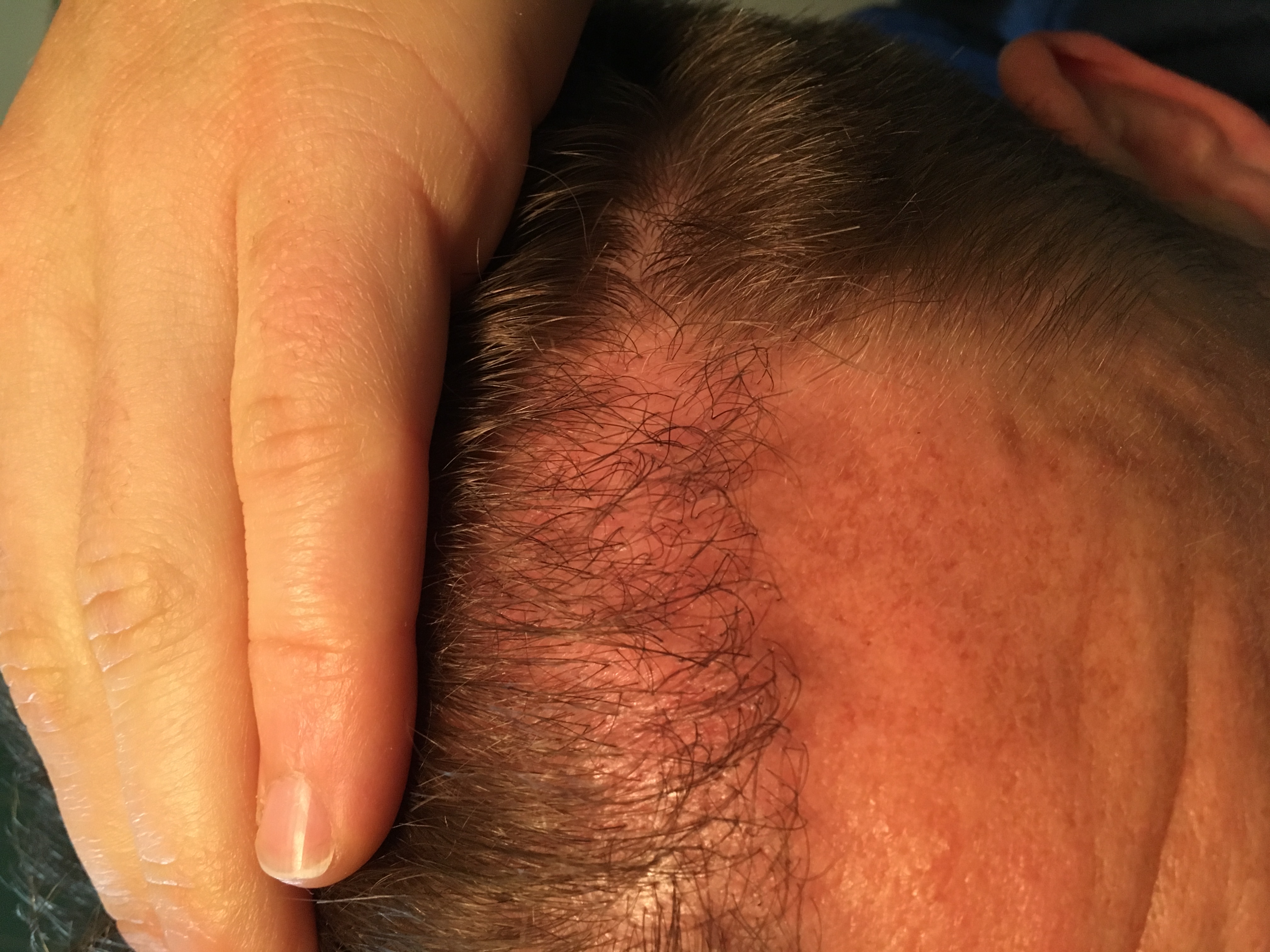 Was die Rötungen angeht stimme ich Mario zu. In echt kommen die nicht so krass rüber, v.a. dann nicht wenn man mir geradeaus auf den Kopf blickt. Wie es dann ausschaut wenn die Haare sich größtenteils verabschiedet haben bin ich mal gespannt.