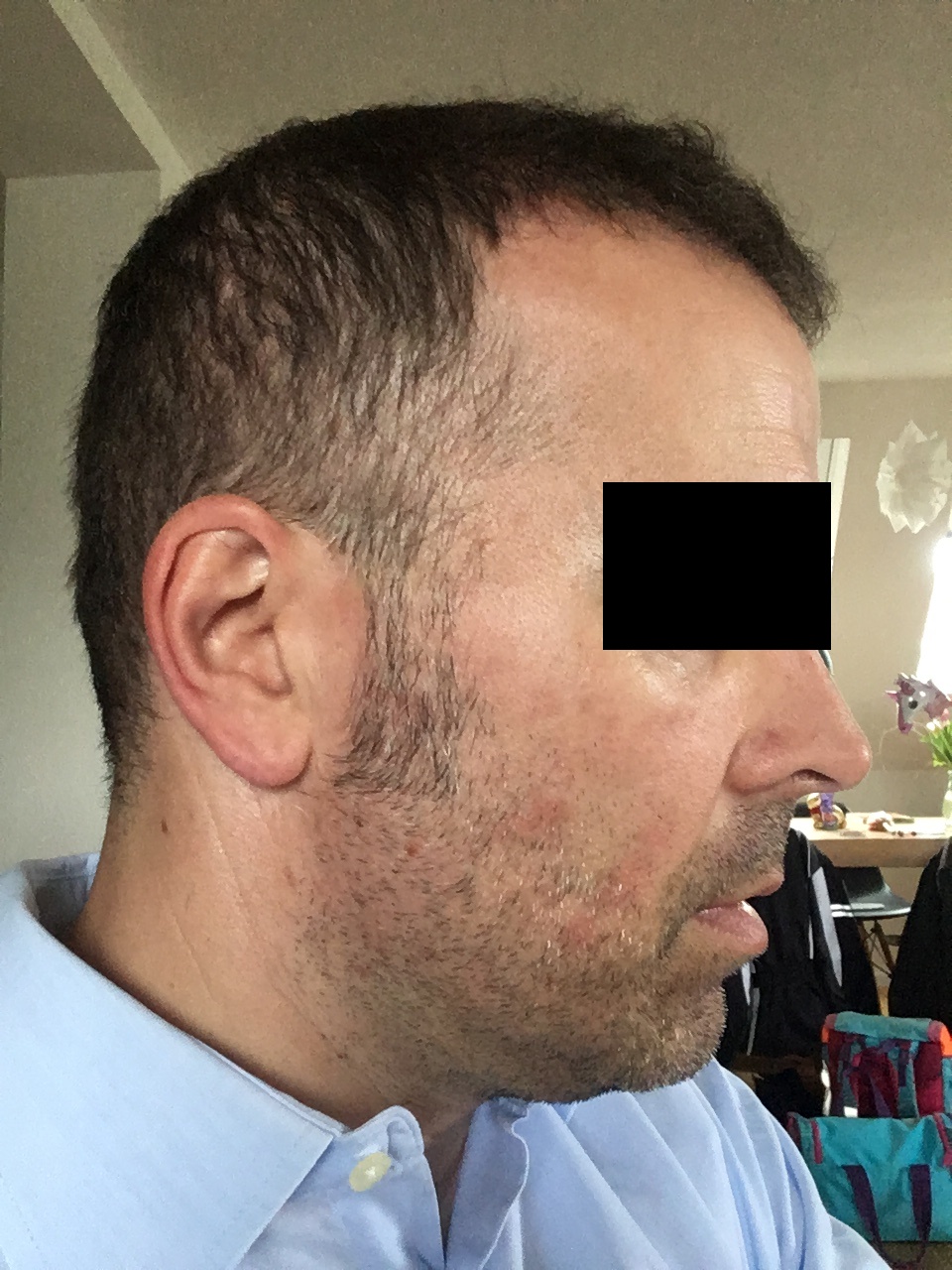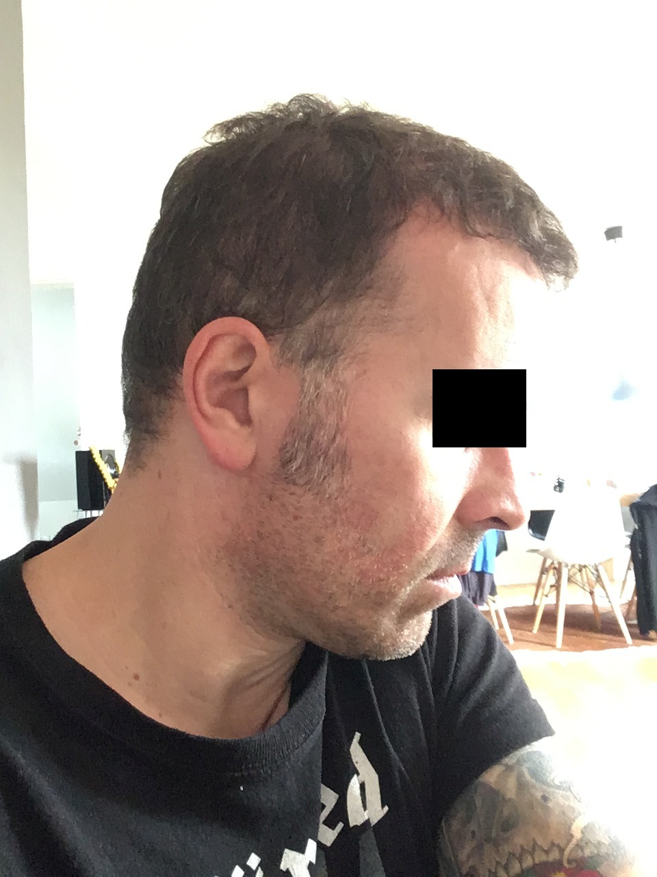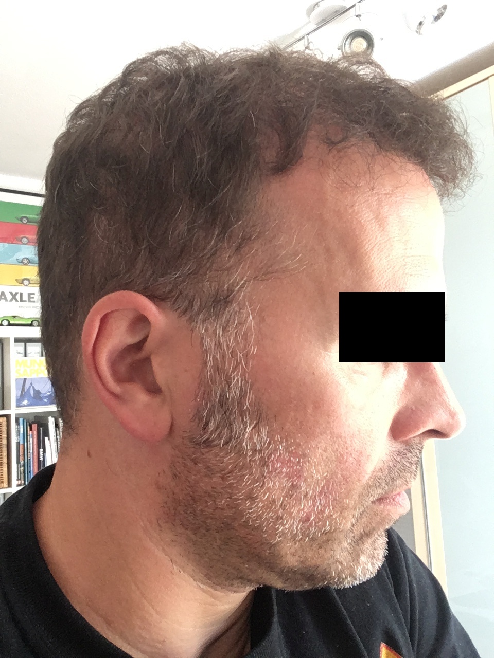 Oktober 2018: 300 Grafts bei Hairmedic (FUE) für GHE (eigentlich im Nachhinein nicht nötig gewesen, dafür sind diesmal die Stirnfalten weg - gute Nebenwirkung der üblichen Schwellung zu meiner erfreulichen Überraschung)