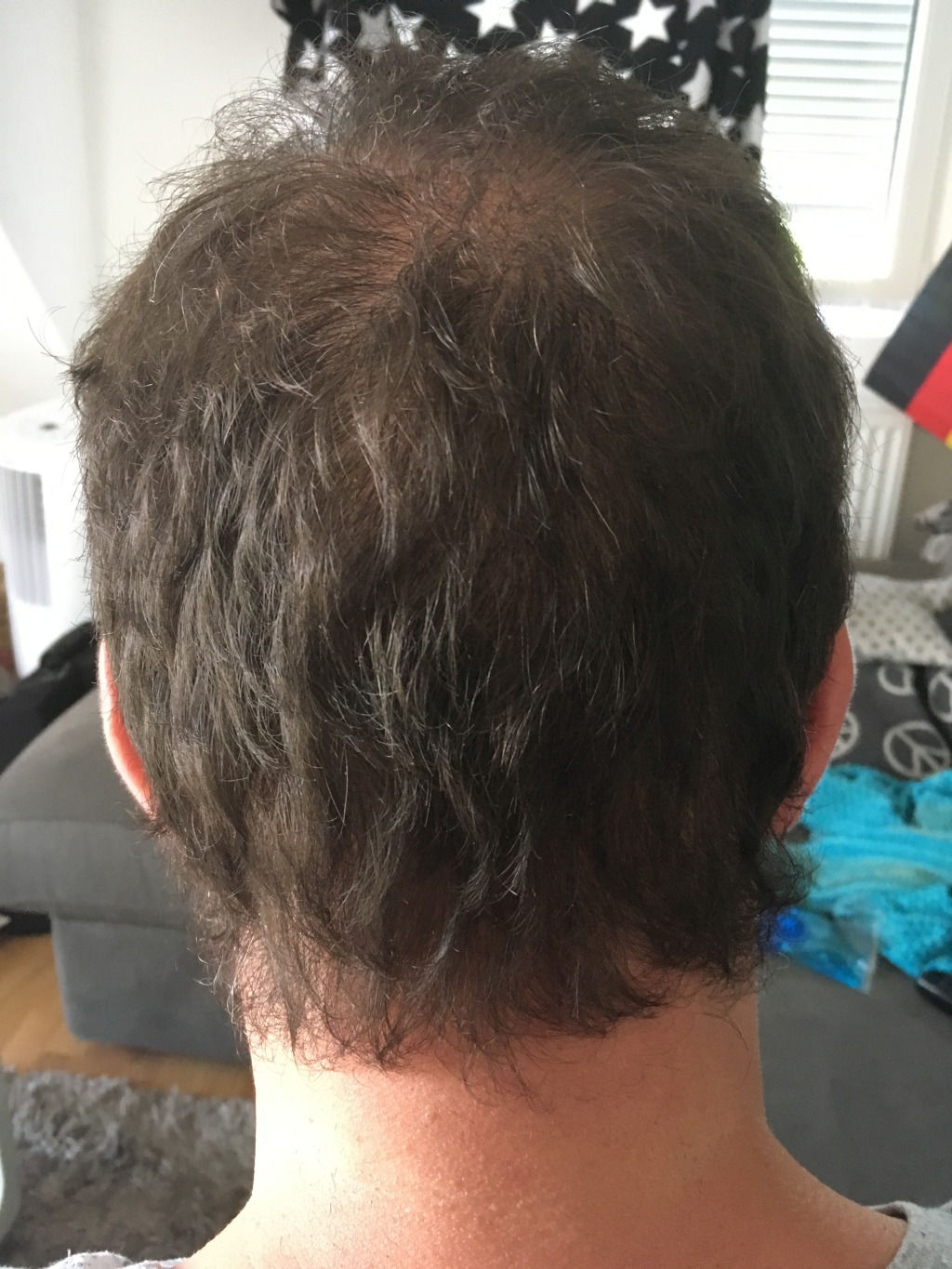 Ich bin lediglich mit dem Oberkopf ein wenig ungeduldig, da man die Kopfhaut doch noch immer gut durchschimmern sieht. Da hatte ich mir nach 6 Monaten eigentlich erhofft, dass es relativ dicht ist. Aber vielleicht habe ich mir da etwas zu viel erhofft.