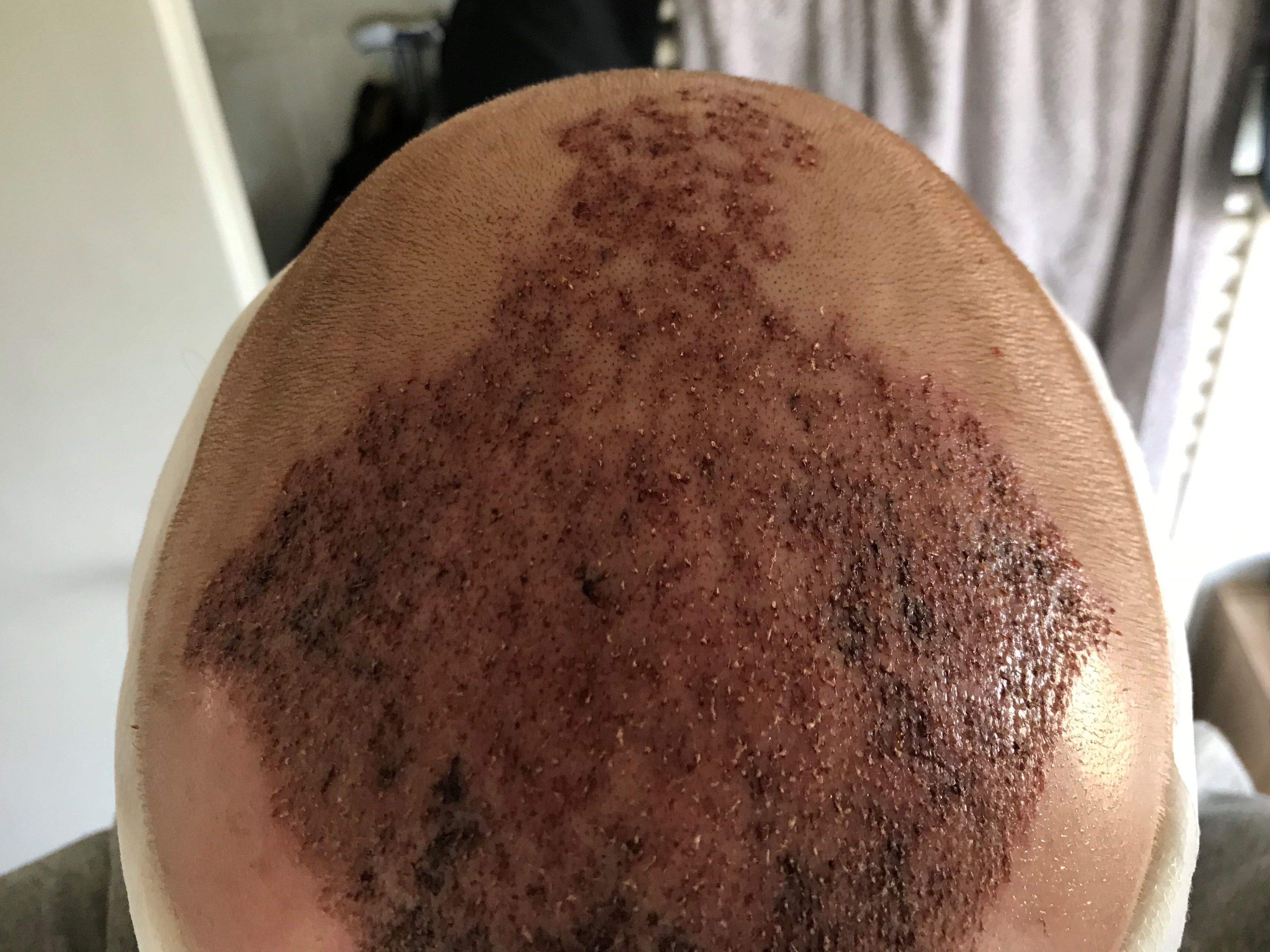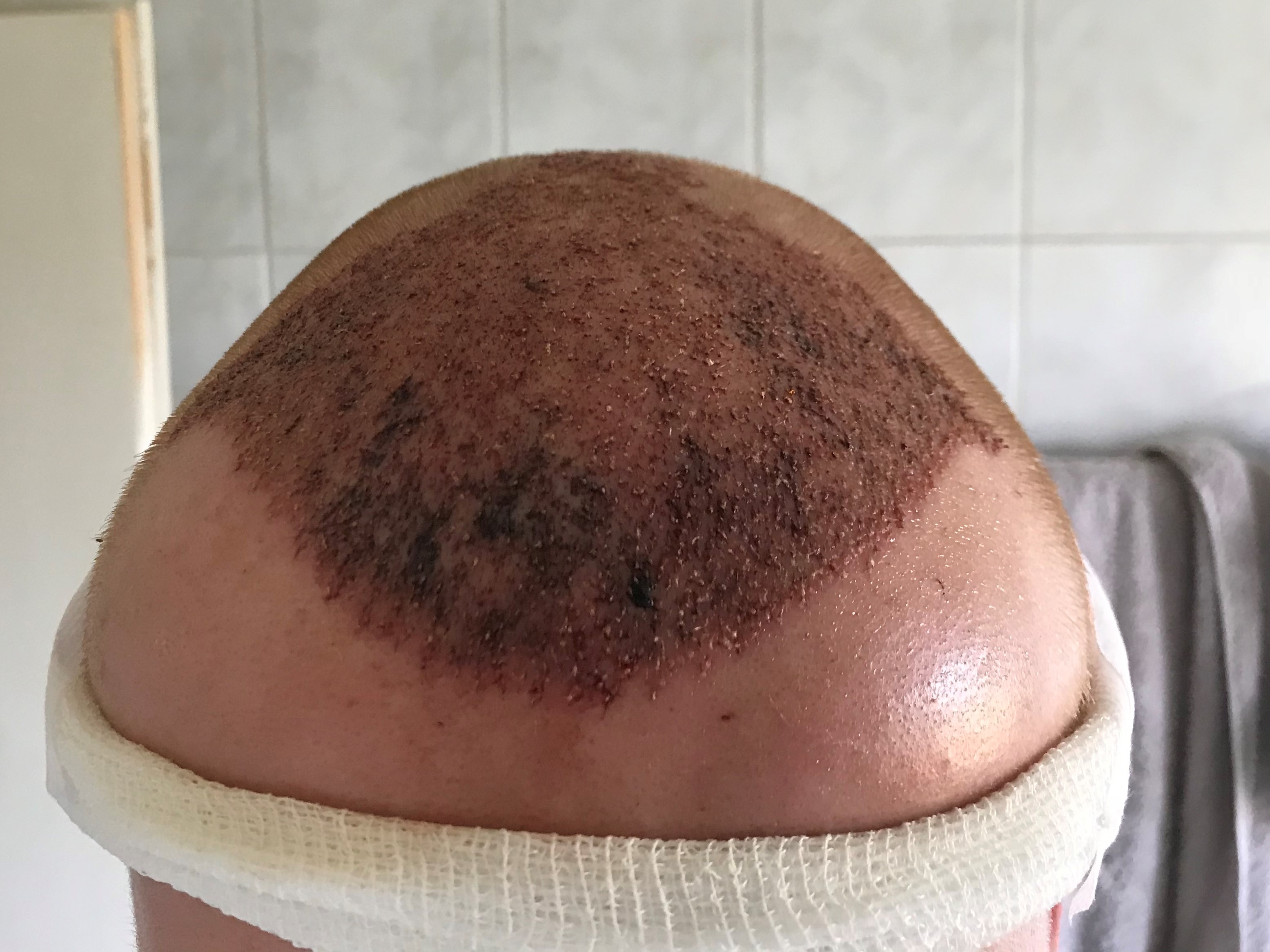 Mich würde halt interessieren woran es gelegen hat, dass viele Grafts nichts angewachsen sind. Wenn man sich das Bild nach der OP anguckt, würde ich schon sagen, dass auch 3500 Grafts gesetzt wurden. War es die starke Krustenbildung, auf welche mich der Arzt bei der Verbandabnahme hingewiesen hat?