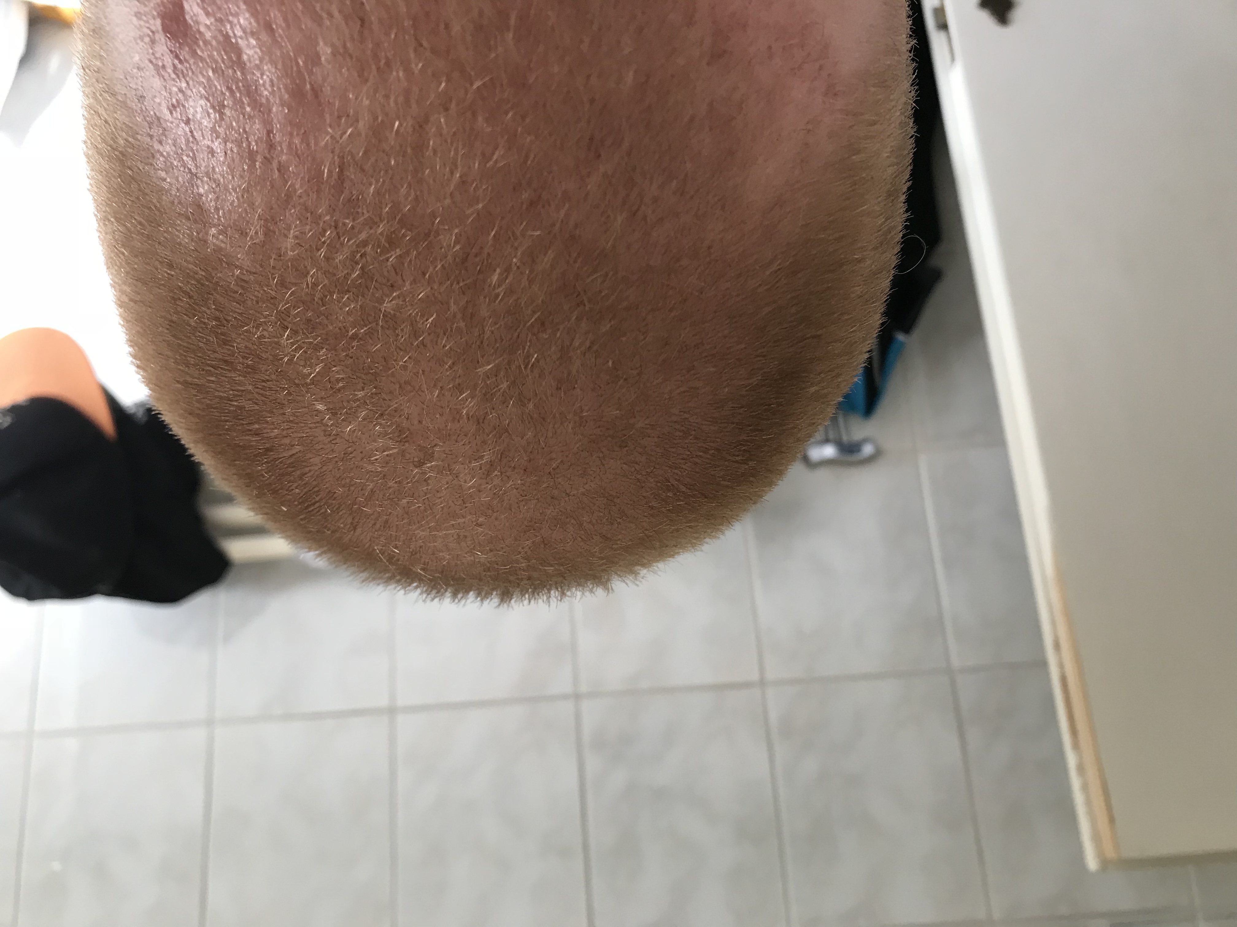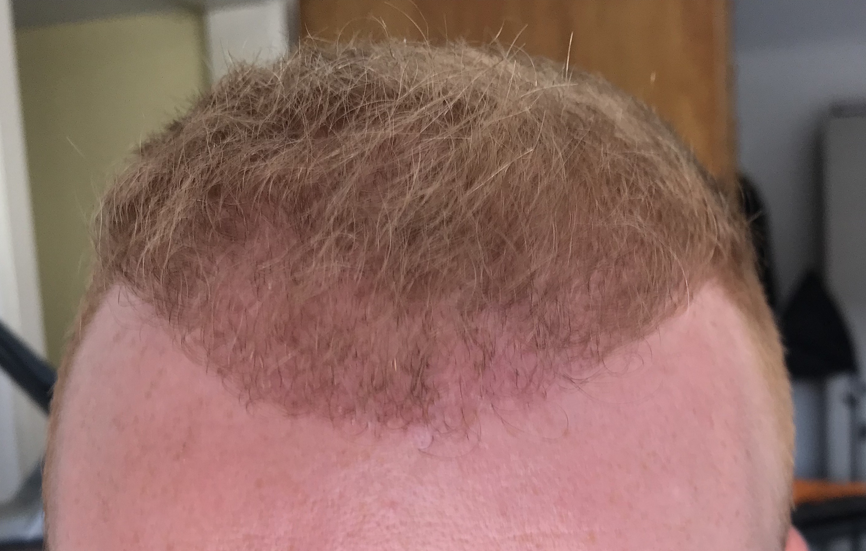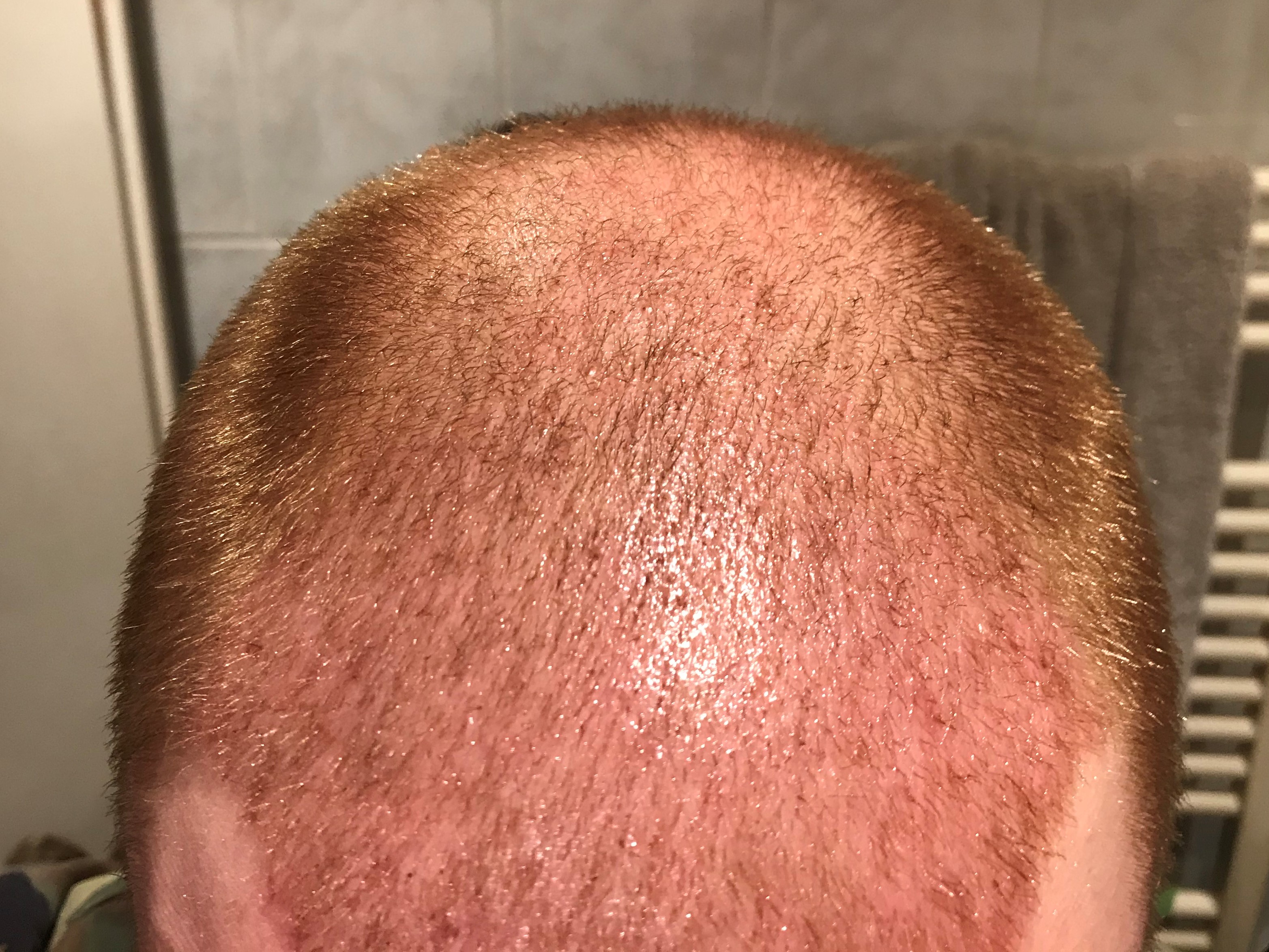 Weiterhin ist warten angesagt ... rasiere mir die restlichen Haare meist auf 5mm, da der transplantierte Bereich deutlich langsamer wächst.