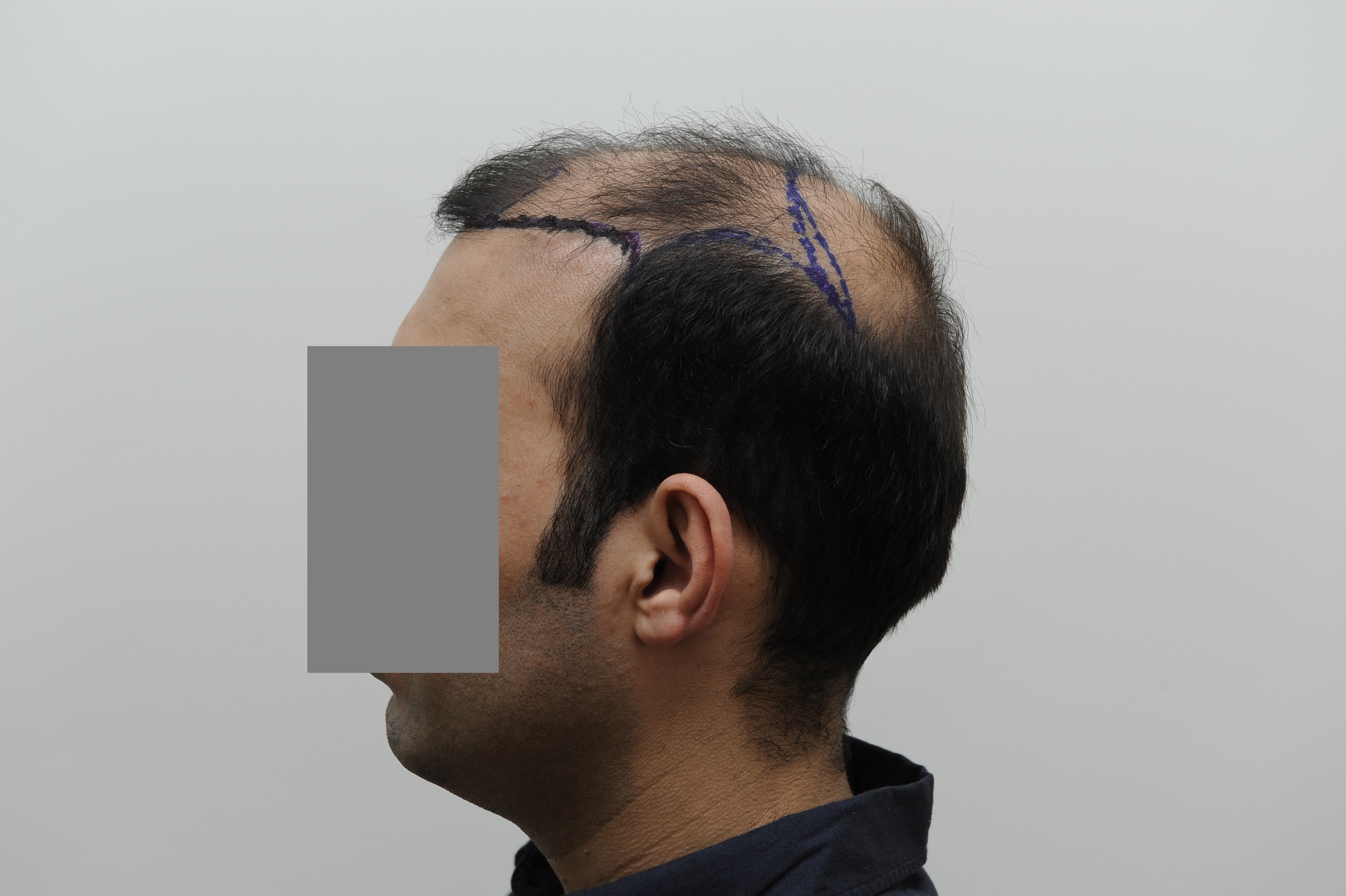 Nach Ankunft in der Klinik begutachtete Dr. Demirsoy meinen Haarstatus und stellte mir Fragen zu meinem Haarausfall. Da die kahle Fläche sehr groß war, entschieden wir uns für uns für eine konservative Haarlinie und die Transplantation des vorderen und mittleren Kopfes. Die Tonsur wurde ausgelassen und kann bei einer zweiten OP behandelt werden.