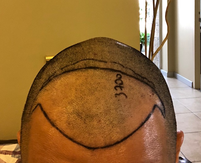 Gemacht wurde nur das 1/3 der Front. Da ich keine Medikamente nehme, hat Dr. Özgür gleich gesagt, dass es sinnvoller wäre, so zu transplantieren, als wäre vorne kein Resthaar mehr da.