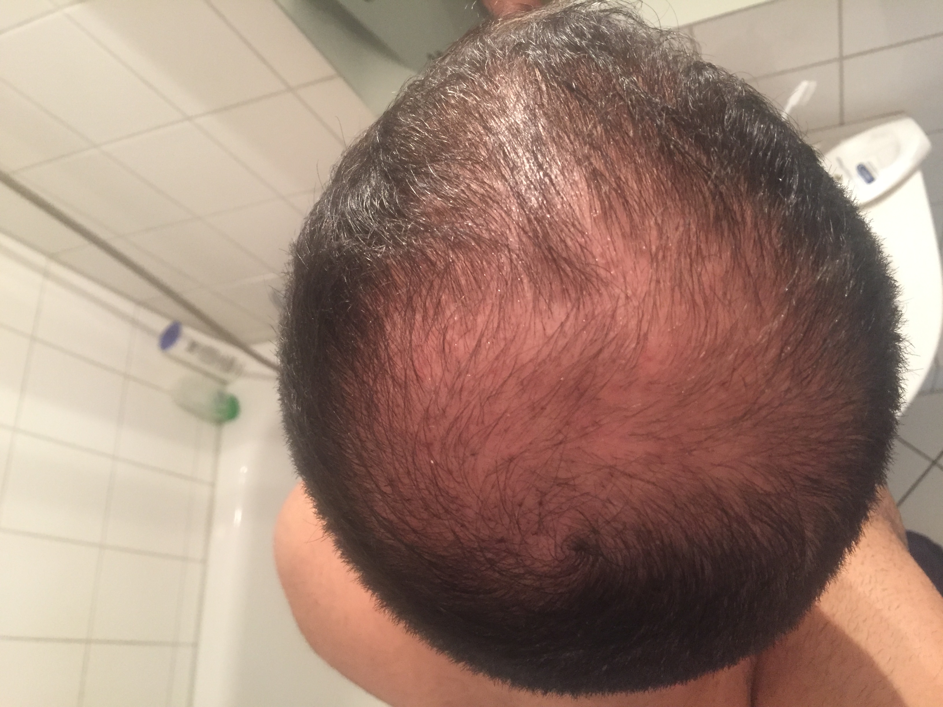 Ich war Sonntag beim Friseur und habe mir die Seiten ganz kurz schneiden lassen und festgestellt, dass der Entnahmebereich weiterhin stark gerötet ist.