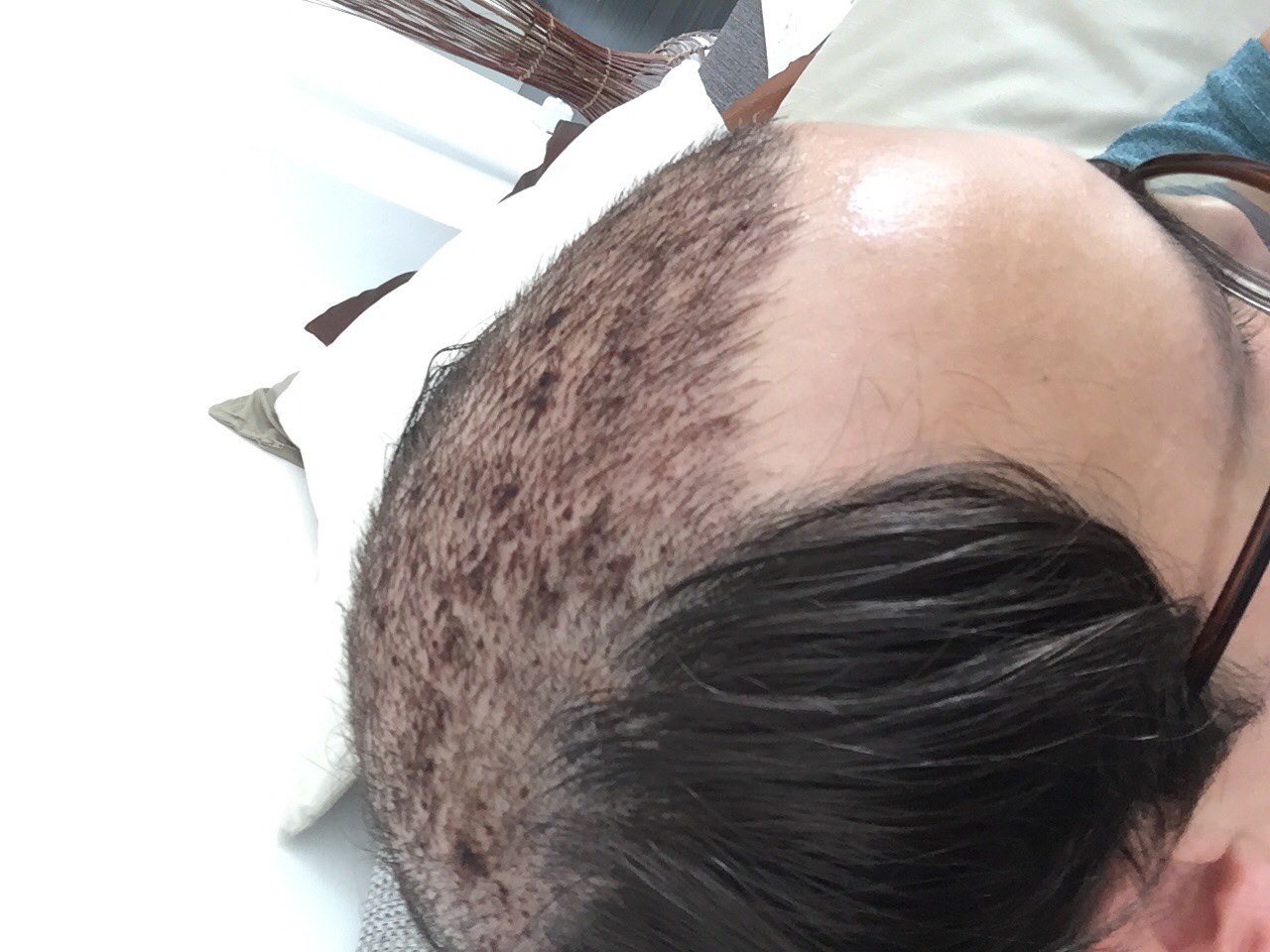 Dr. Muresanu meinte, dass die Tonsur am Ende wohl so aussehen wird, als ob dort der Haarausfall leicht eingesetzt hat. Damit kann ich sehr gut leben.
