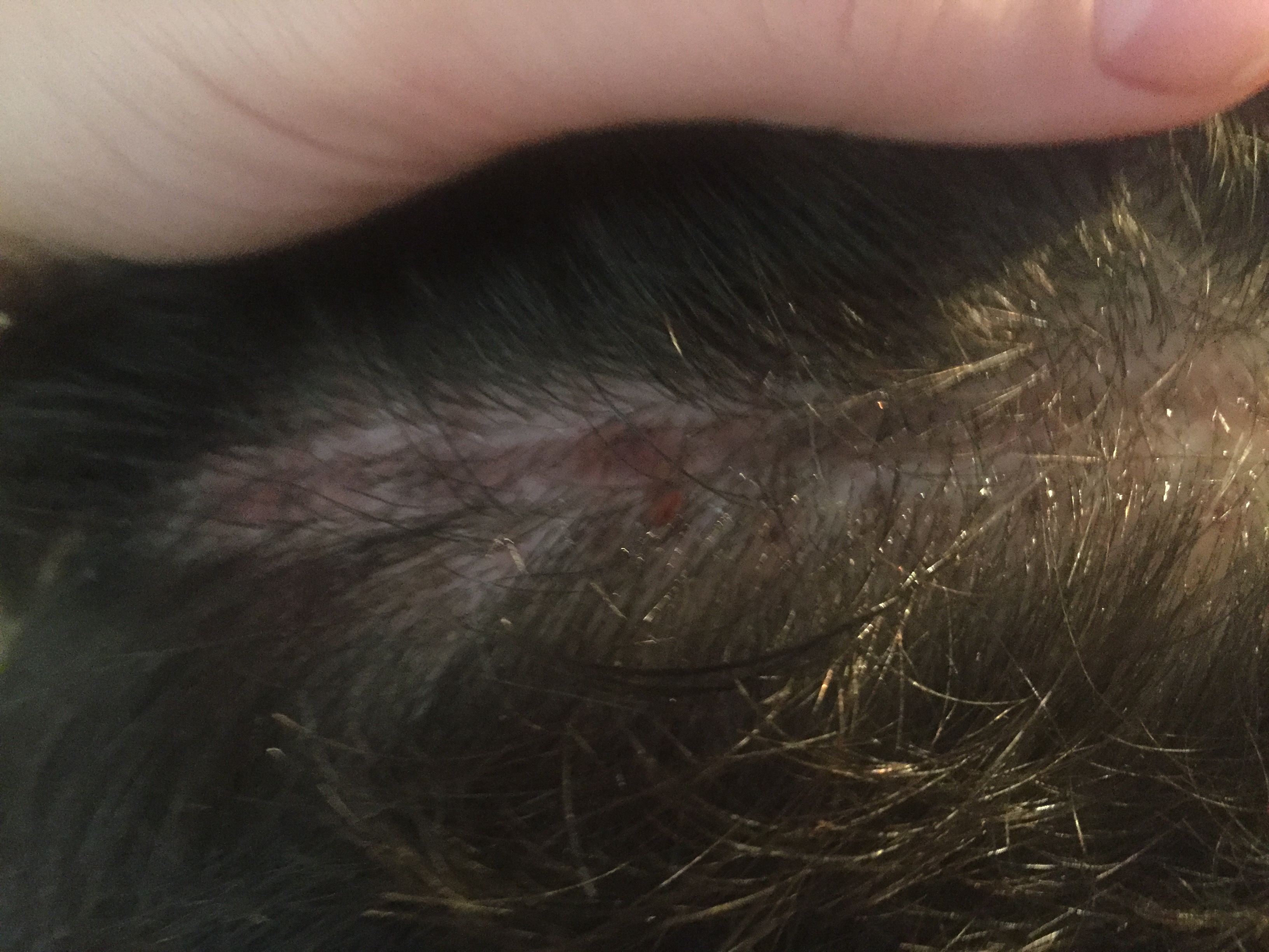 Hier die Bilder nach 14 Tagen. Langsam aber sicher verabschieden sich die „neuen" Haare. Der Narbe geht es auch von Tag zu Tag besser.
