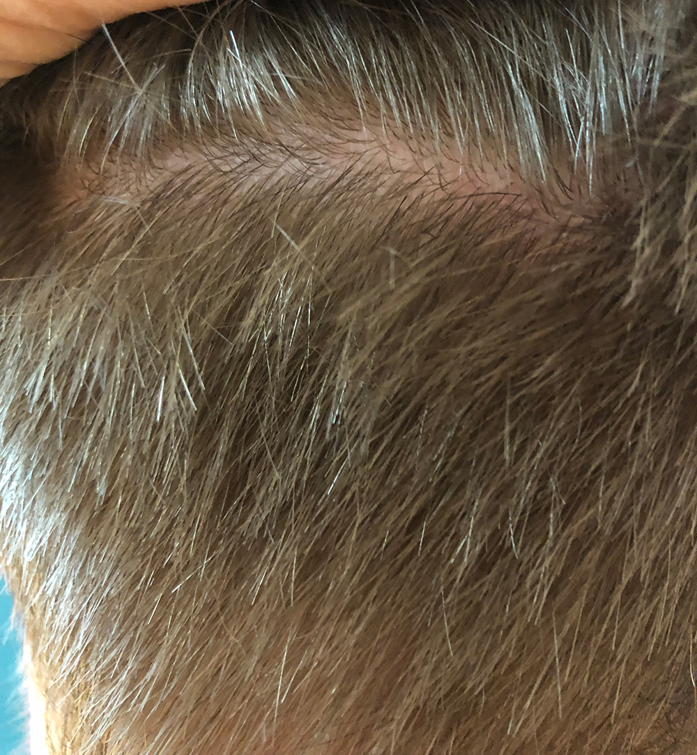 Aktueller Haarstatus nach der Hamilton-Norwood-Skala: II-III (?)