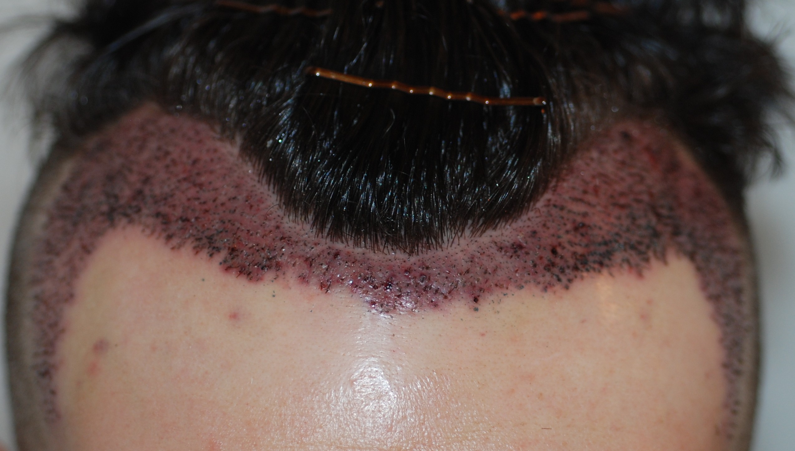 Ankunft war morgens um 7.30 in der Klinik und nach einem Vorgespräch mit dem Doktor, in dem die endgültige Haarlinie festgelegt wird und noch offene Fragen beantwortet werden, ging es auch gleich zum Haare rasieren und zur Extraktion der Grafts durch 2 Assistentinnen. Anschließend setzte Dr. Feriduni die Slits und die Assistentinnen setzten die Grafts danach wieder ein. Um ca. 14.30 war es dann auch geschafft Die 3 Schritte liefen laut dem Doktor ohne Komplikationen nur meine Blutung war wohl sehr stark, wobei ich hoffe, dass das keine negativen Auswirkungen nach sich zieht. Es wurden im Endeffekt 2200 Grafts die Haarlinie wurde nicht tiefer gesetzt, lediglich ein wenig verdichtet.