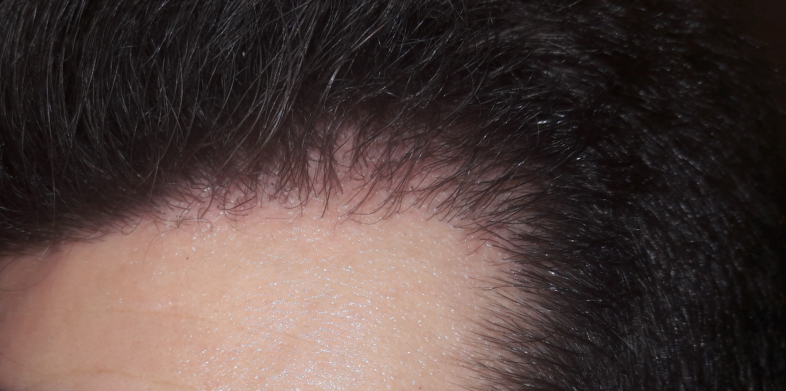 Medikamente sind in diesem Fall keine Hilfe, weil die betroffen Stellen komplett "nackt" waren. Aber das Risiko das hinter der neuen Haarlinie eine Lücke ensteht würde natürlich mit Medikamenten reduziert.