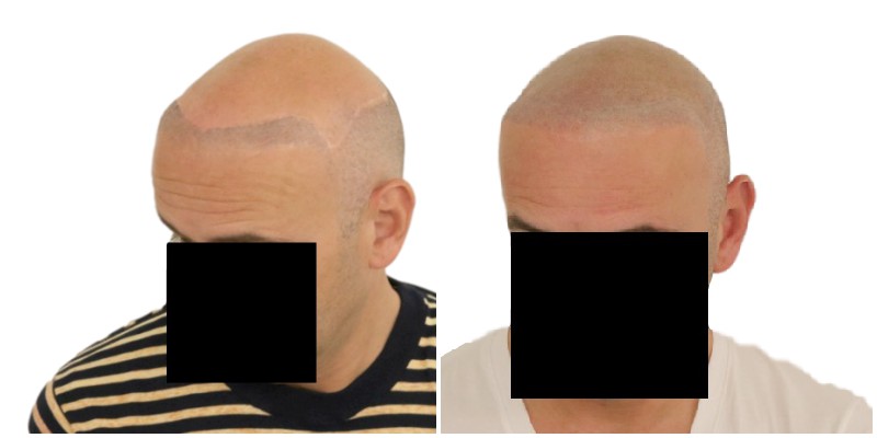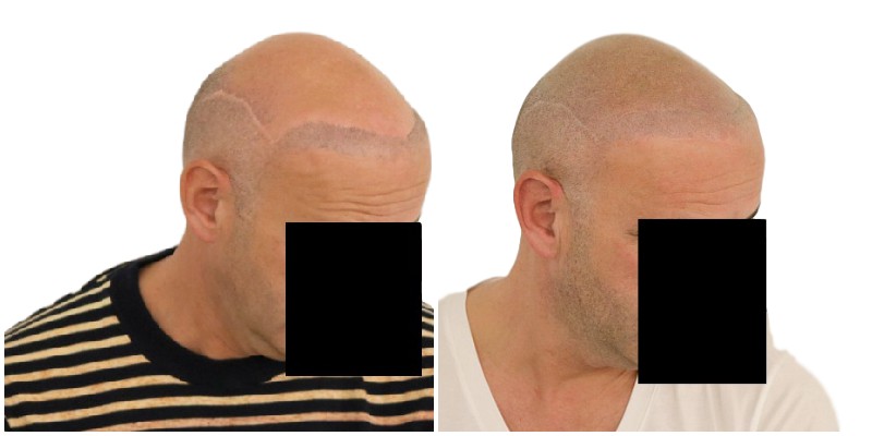 Yves hatte Pech und sein Haarausfall entwickelte sich zu Norwood Typ 7. Dies bedeutet, dass Haarersatz mit modernen Mitteln verwendet wird, so dass FUE keine oder praktisch keine Mittel hat, um Verbesserungen aufgrund eines Mangels an Spenderhaaren zu erzeugen.