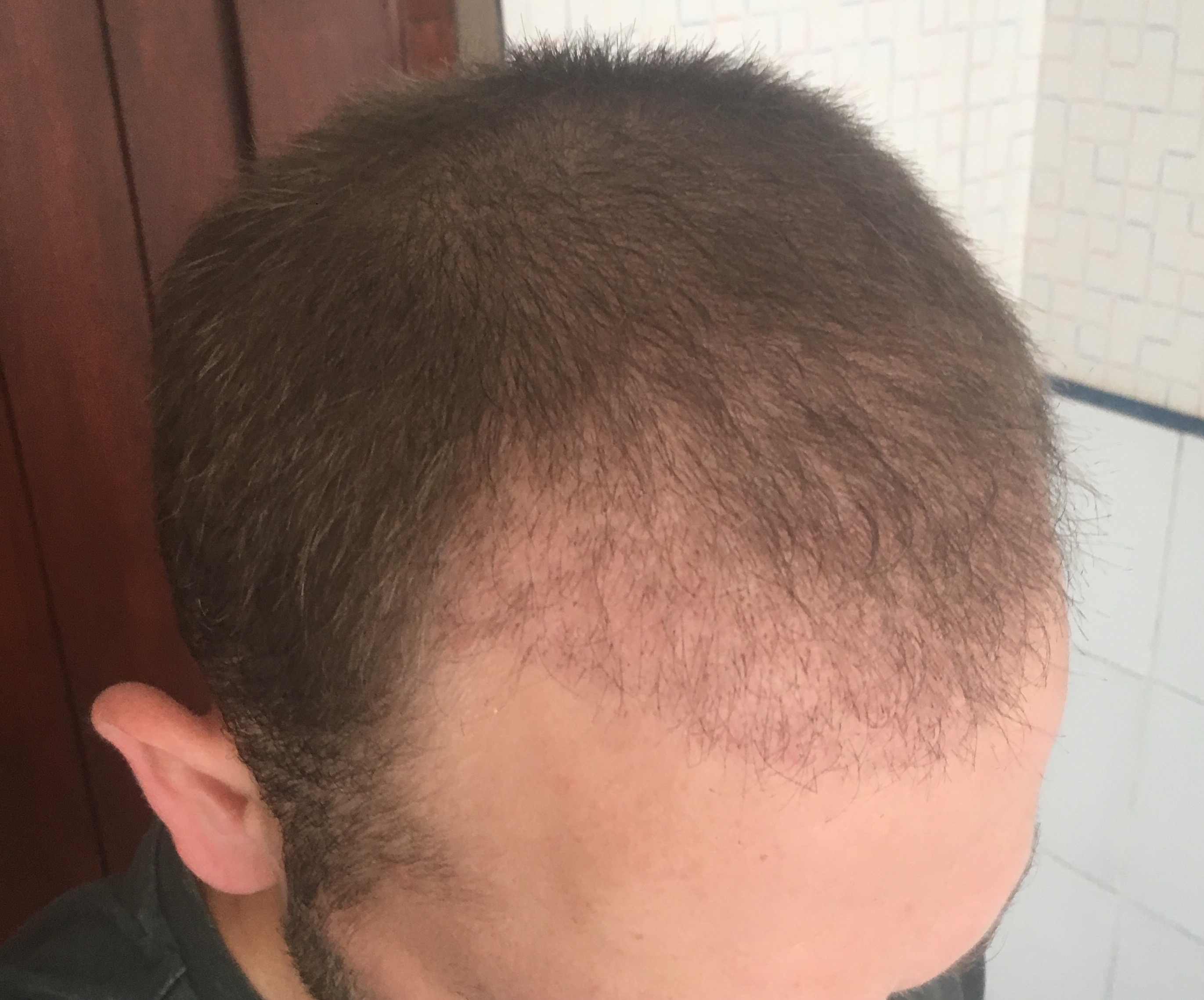 Die Rötung ist leider nach wie vor sichtbar, da muss man wohl Geduld haben. Habe die Haare einmal vor nem Monat komplett auf 2mm gekürzt, seitdem nur die Seiten.