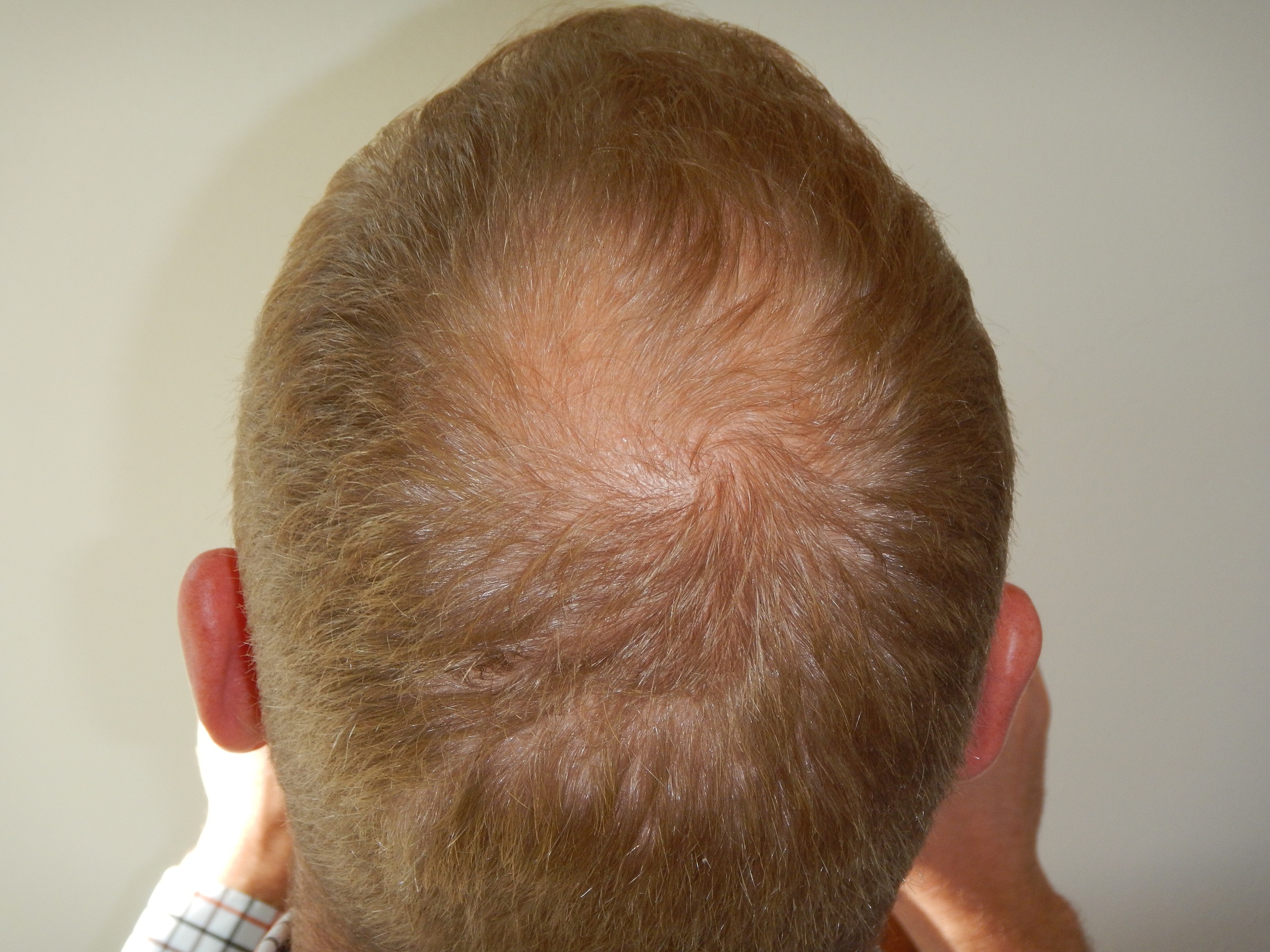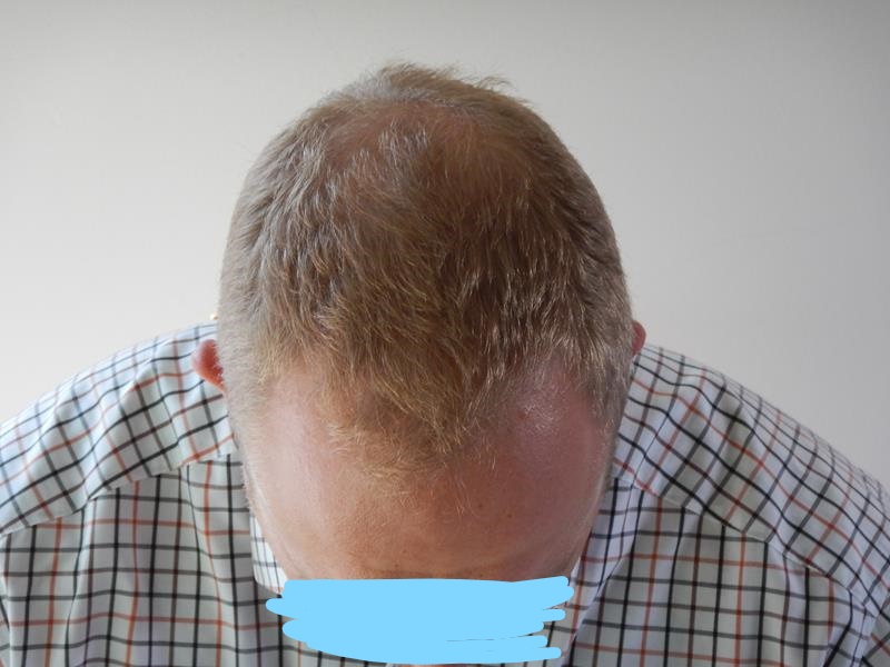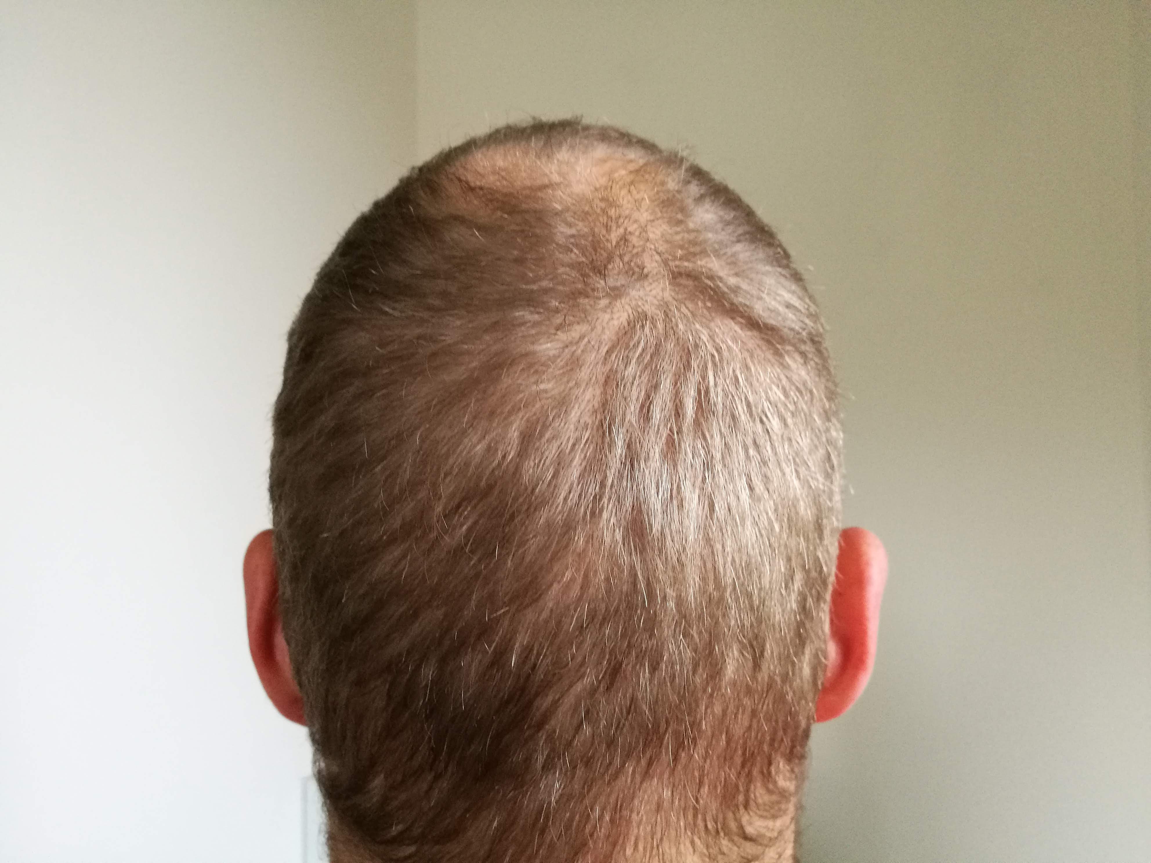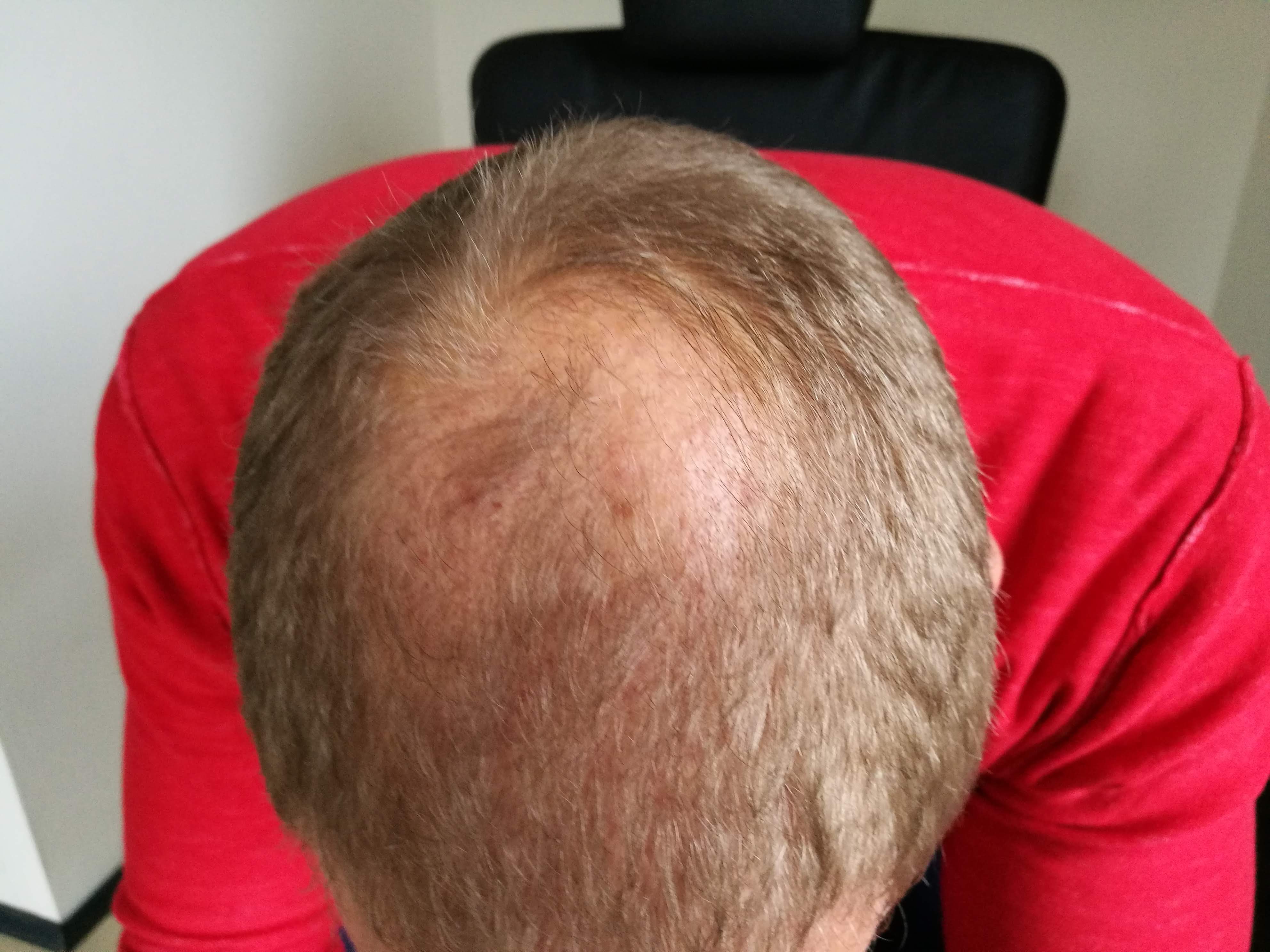 Meine von Natur aus hohe Stirn wird dadurch höher und höher und das nervt mich schon ganz schön. Ich trage die Haare dadurch natürlich recht kurz. Der obere, etwas kahle Bereich stört mich dabei relativ wenig. Denn ich bin sehr groß (1,98m) - dadurch sieht man das eh nicht so.