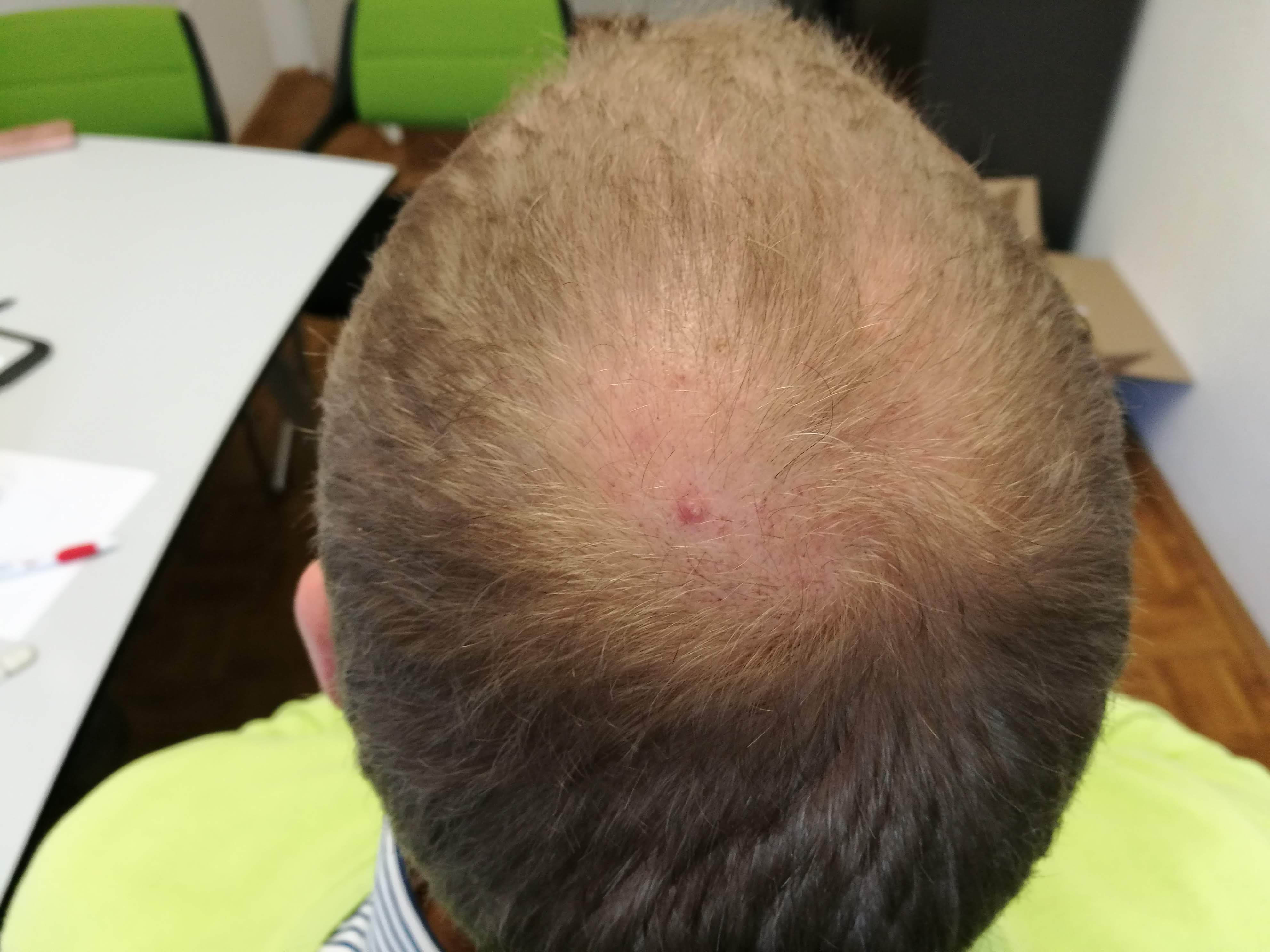 Um mal was positives zu sagen: Der Entnahmebereich sieht aus, wie vorher und fühlt sich auch so an. Ich muss mal bald zum Friseur,um die Seiten und den Hinterkopf etwas kürzer zu machen.