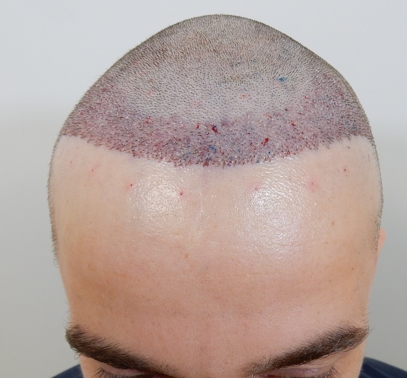 Außerdem überprüften wir seine vorhandene Haar- und Spenderbereiche mit einem Mikroskop, um zu überprüfen, ob sich die Haare in gutem Zustand befanden.