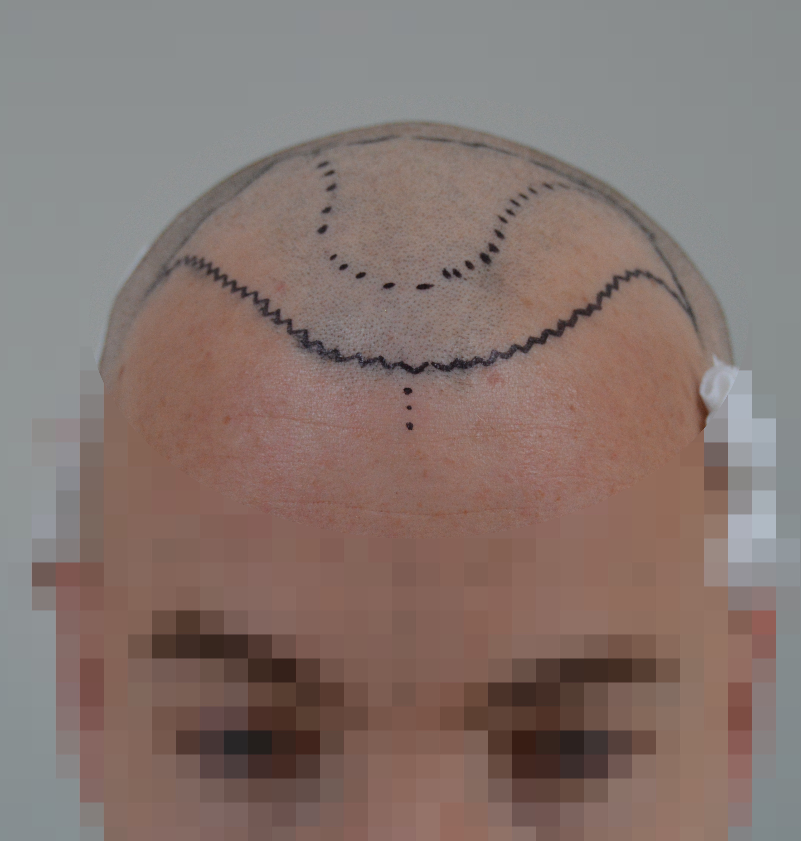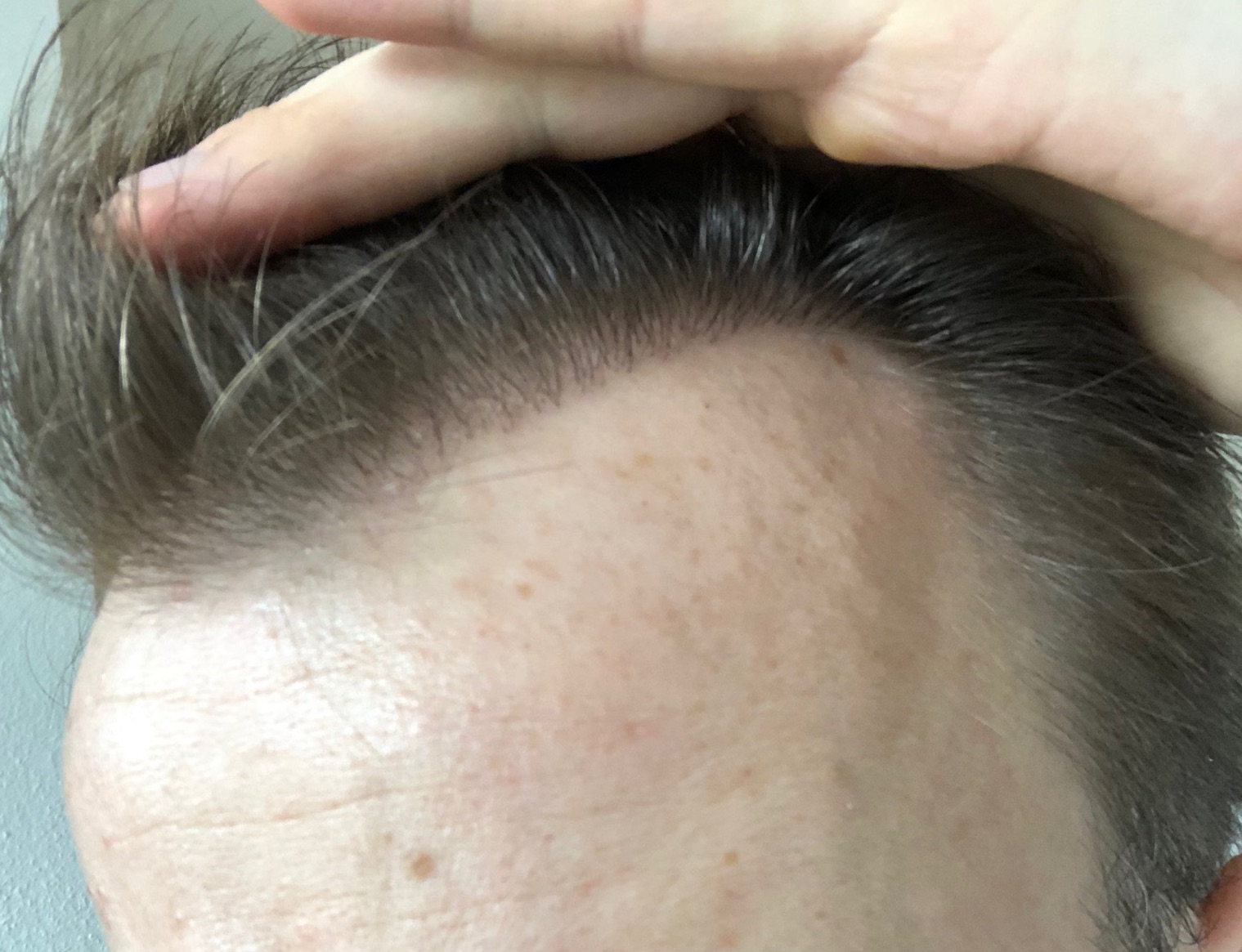 Mein Ziel war es mit der ersten HT wieder eine "richtige" konservative Haarlinie zu bekommen, die Front etwas zu verdichten aber den Donor für weitere OPs zu schonen.