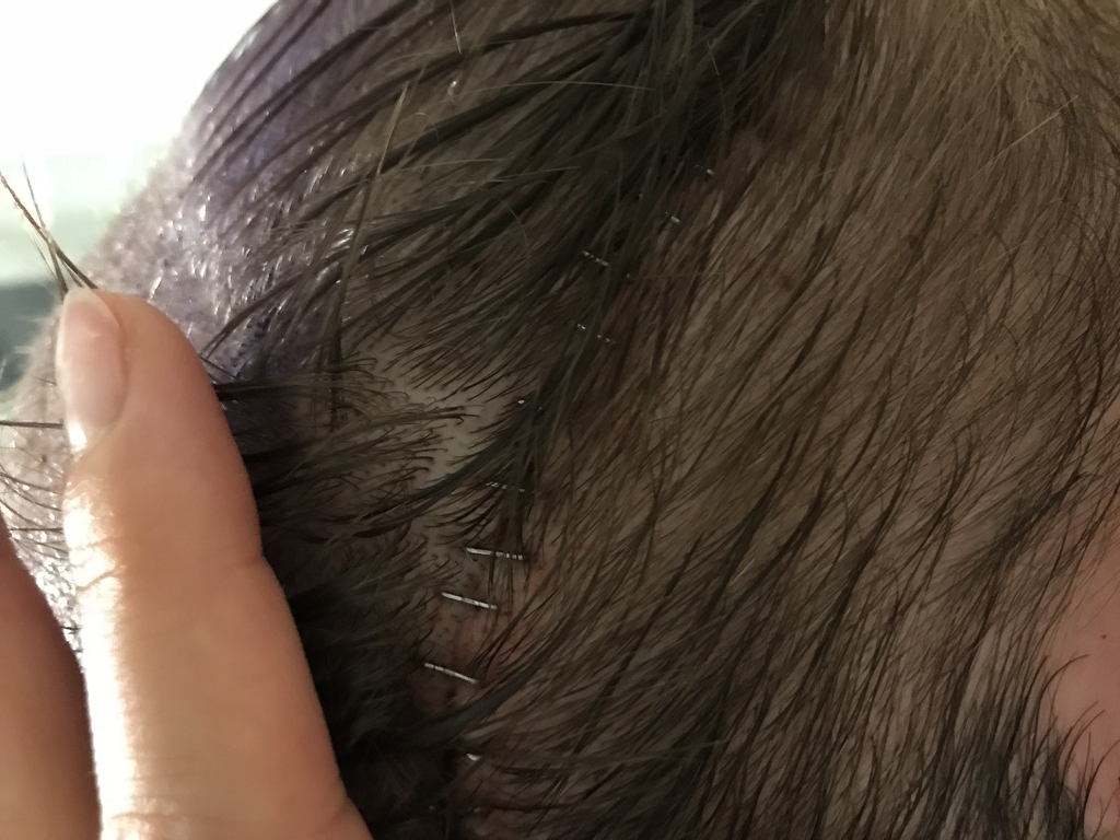 Anschließend begann Frau Muresanu mit dem Setzen der Slits. Anschließend begannen die Mitarbeiterinnen, nach Vorbereitung der ersten Grafts mit der Verpflanzung. Zwischendurch bahnte sich an, dass es wesentlich mehr Grafts werden würden als geplant, was mich sehr freute. Wir landeten am Ende bei 5900.