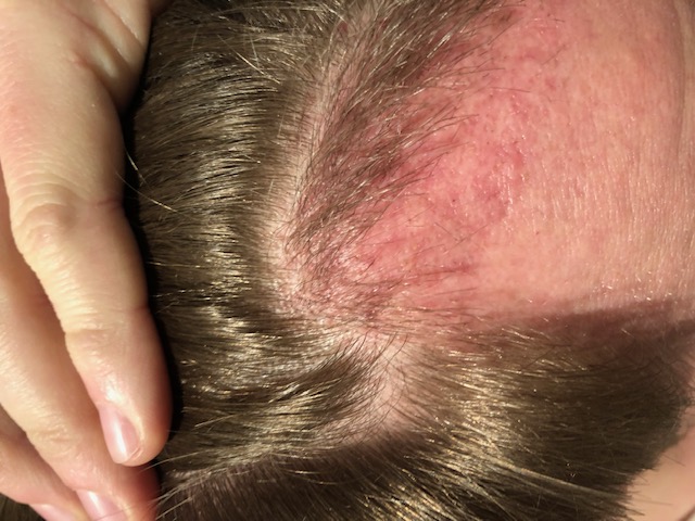 Danach: Danach wurden natürlich wieder Fotos geschossen (s.u.), ich bekam ein Spray zur sofortigen Behandlung und ein Schampoo zur Krustenentfernung ab Woche 2, sowie medizinische Tücher zum unterlegen um an den ersten Tagen die Kopfkissen nicht zu versauen.