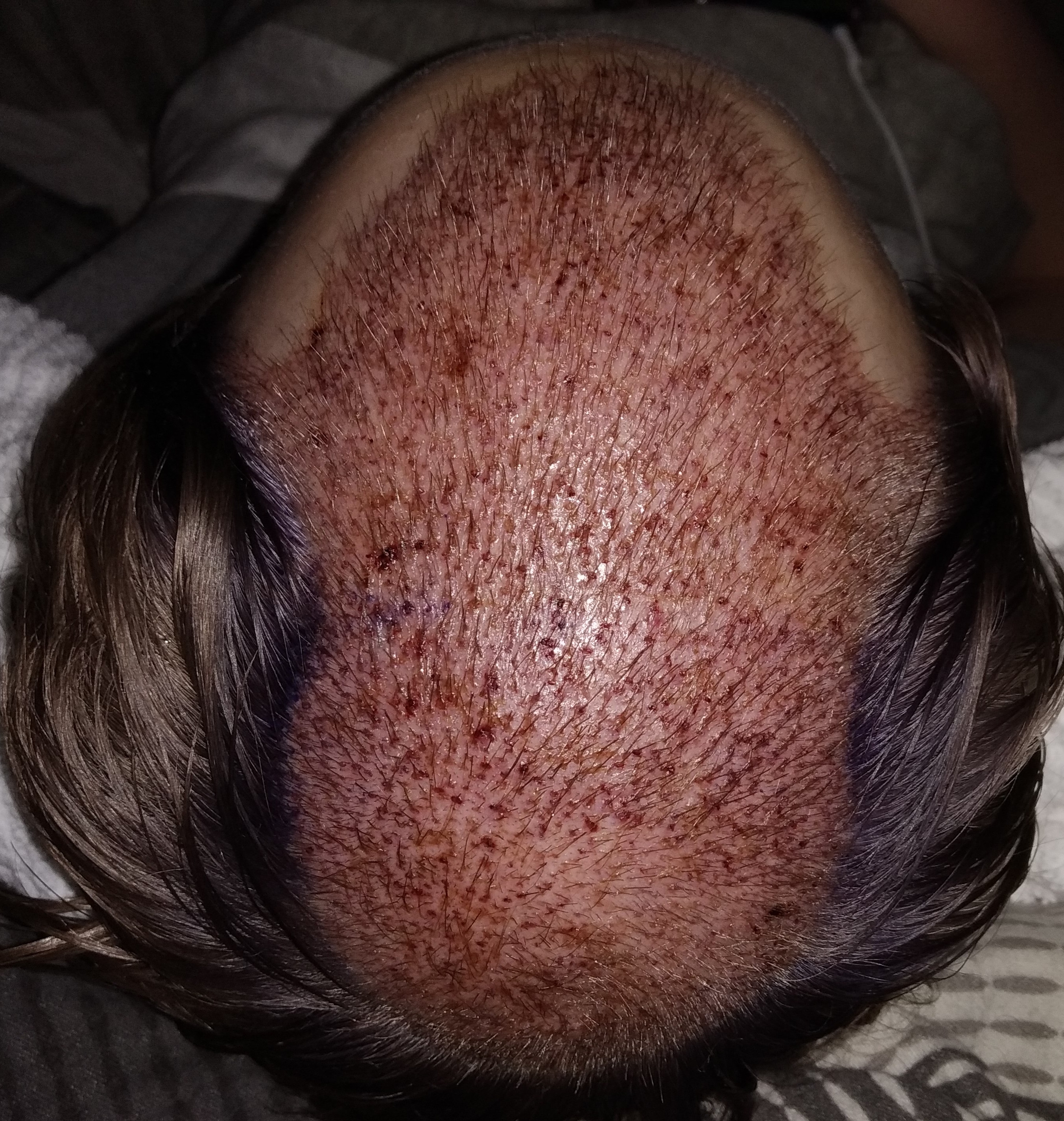 Lief super wurden mehr Grafts genommen als geplant weil mein Donor wohl sehr dicht und viele Multis hat.