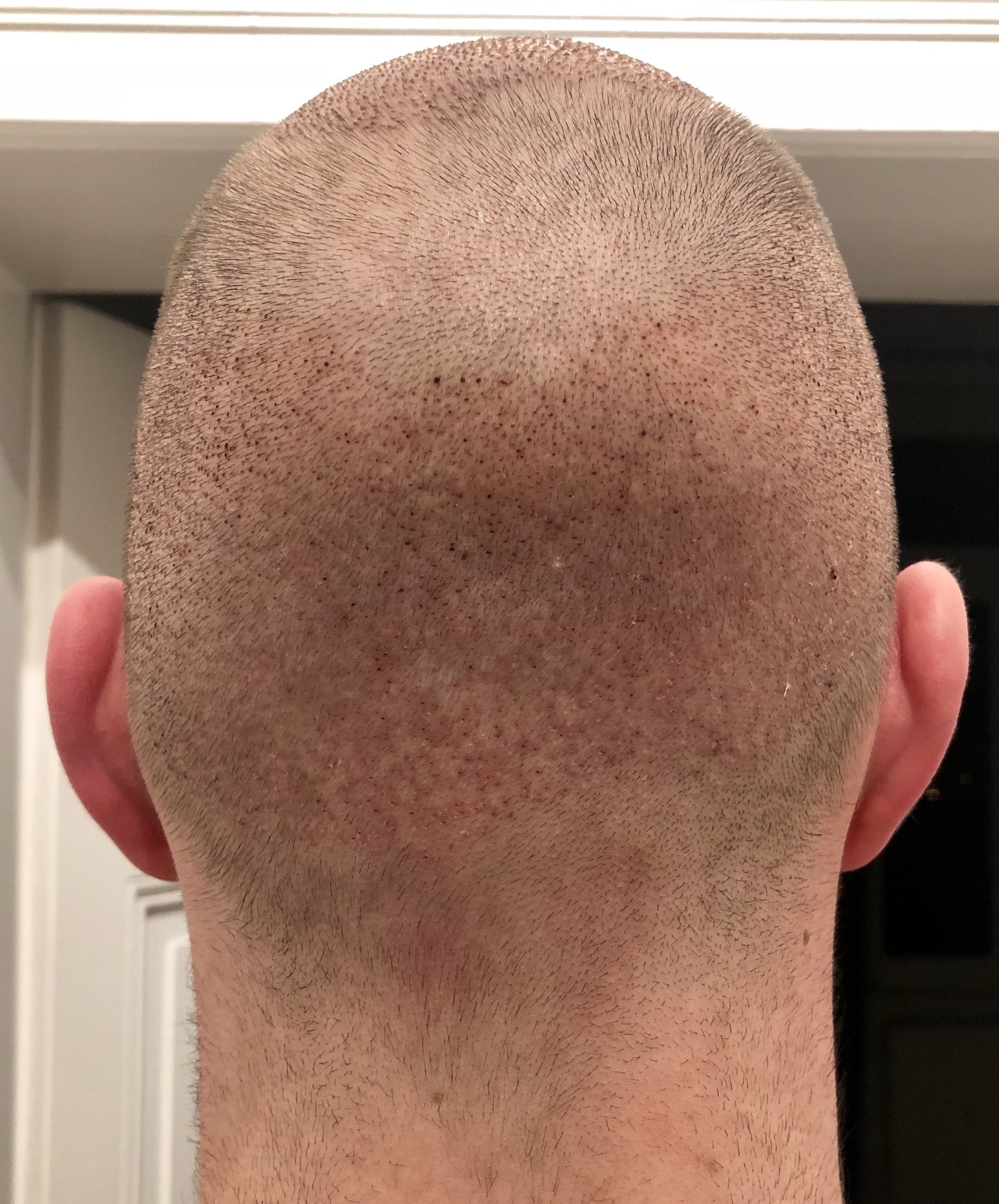 der spenderbereich sieht aber für fast 2 Monate post op noch sehr mitgenommen aus oder nicht? vor allem sieht es leider ungleichmäßig aus oder täuscht da das licht auf dem donorfoto?