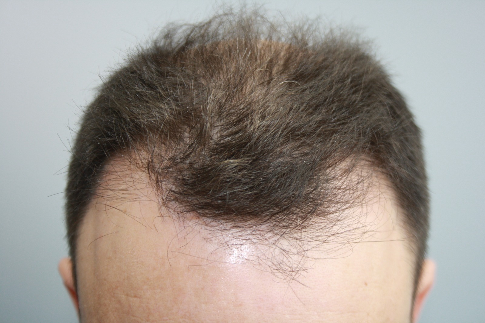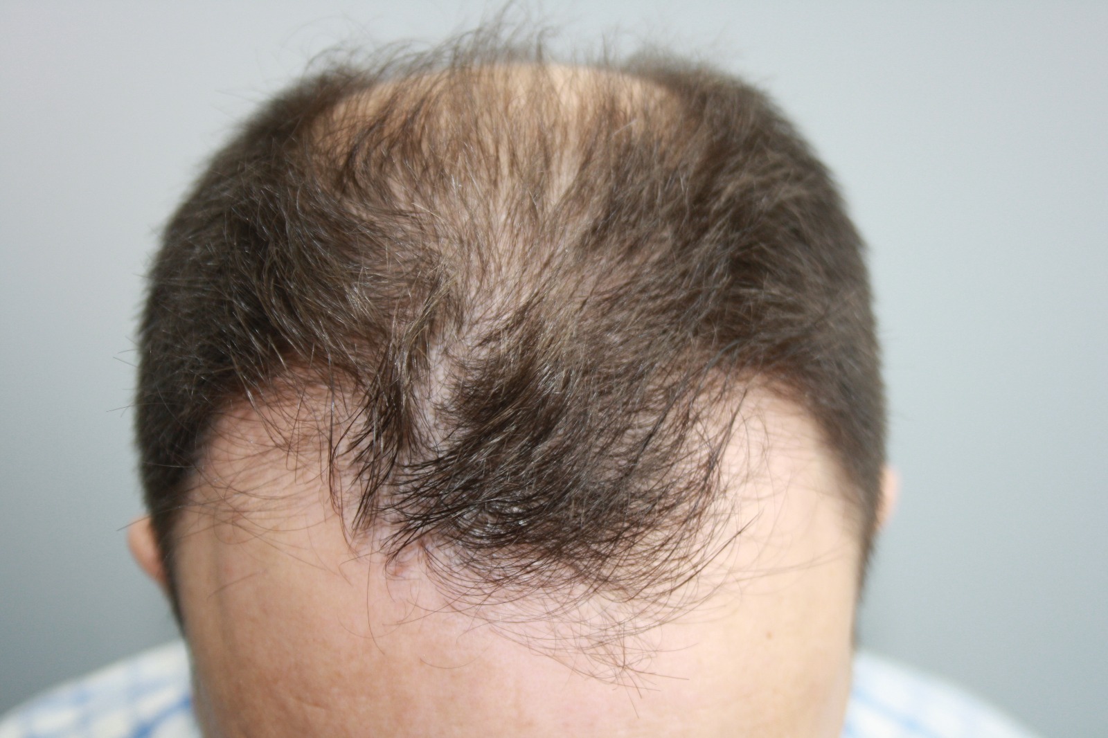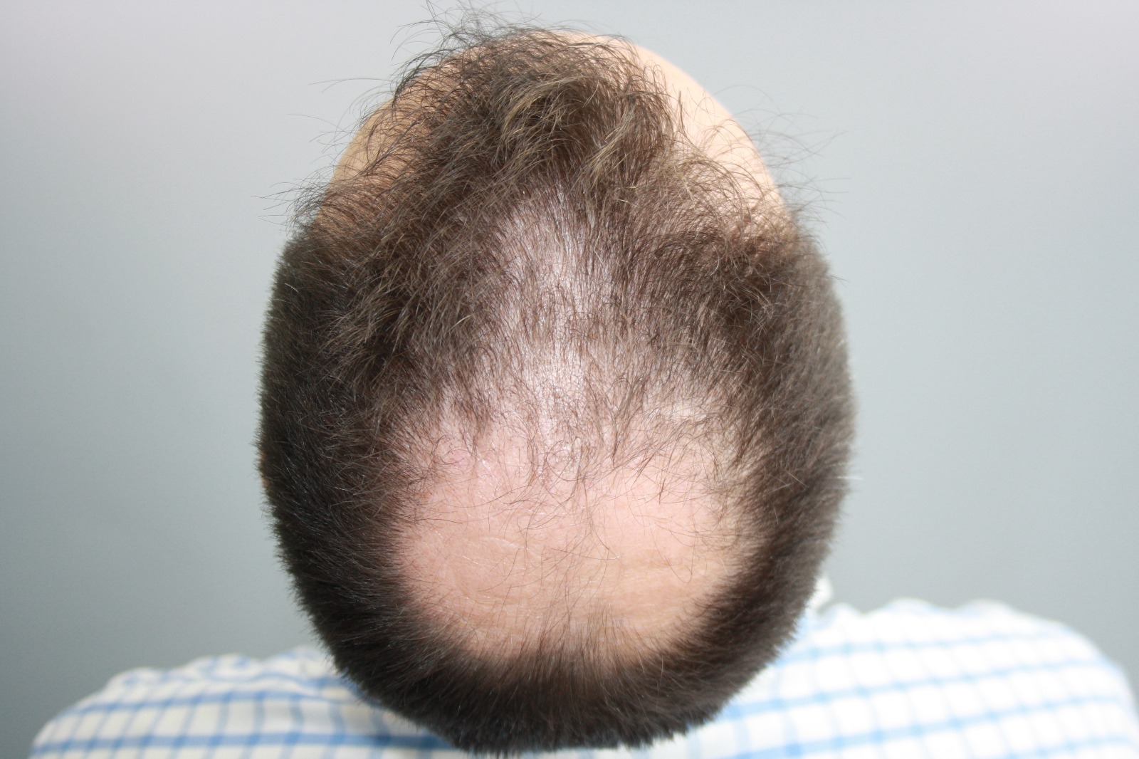 Haarausfall hat Anfang der 20er hinten in der Tonsur angefangen bis sich nun ein schöner Hubschrauberlandeplatz gebildet hat. Absolut kahl.