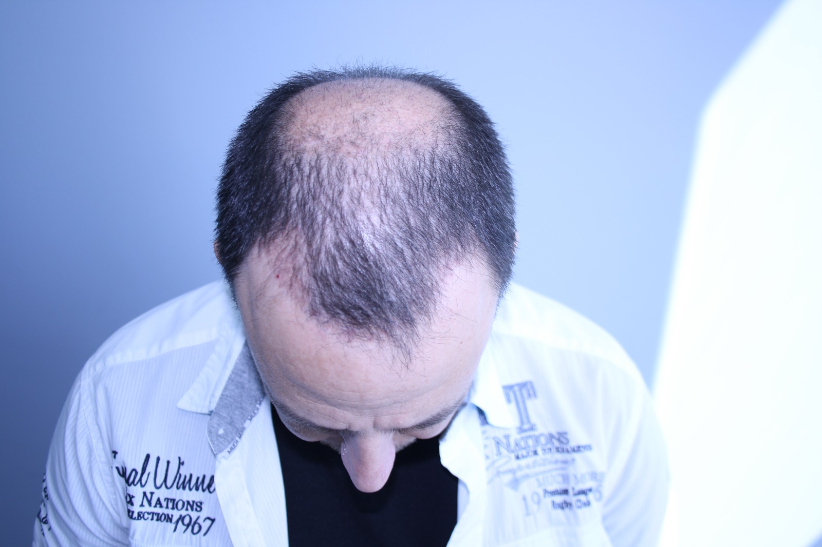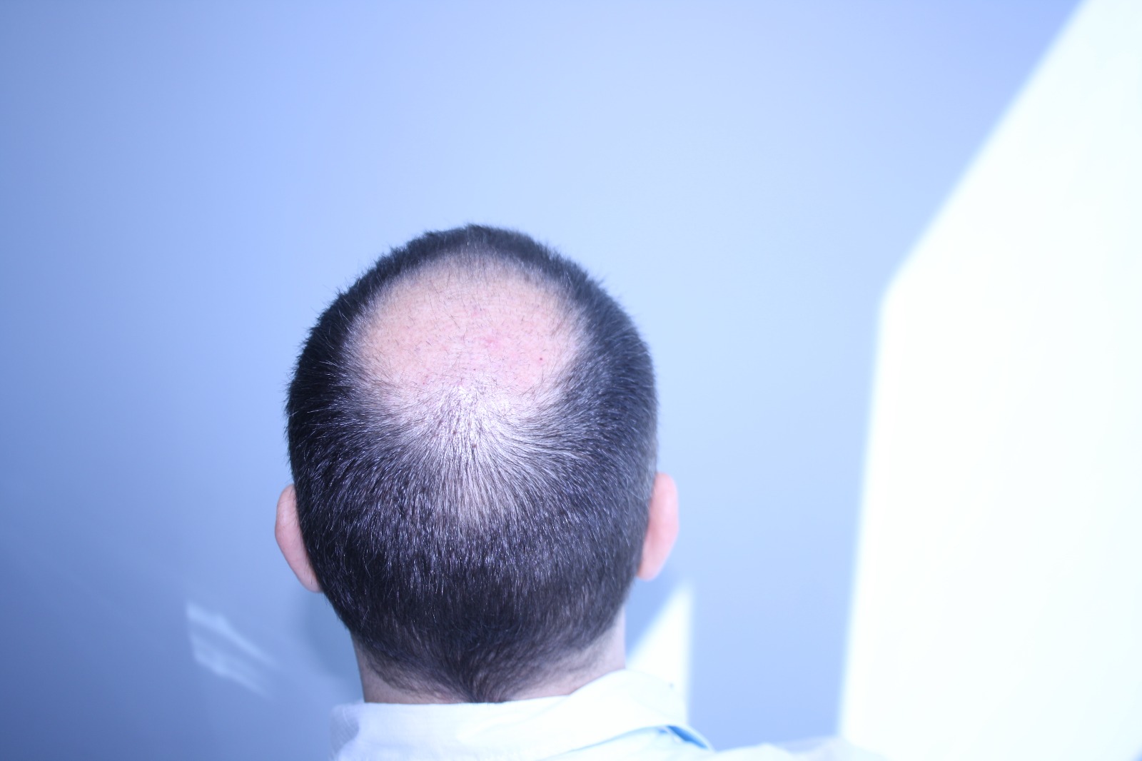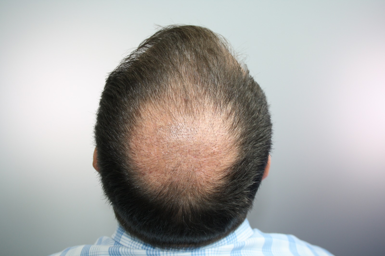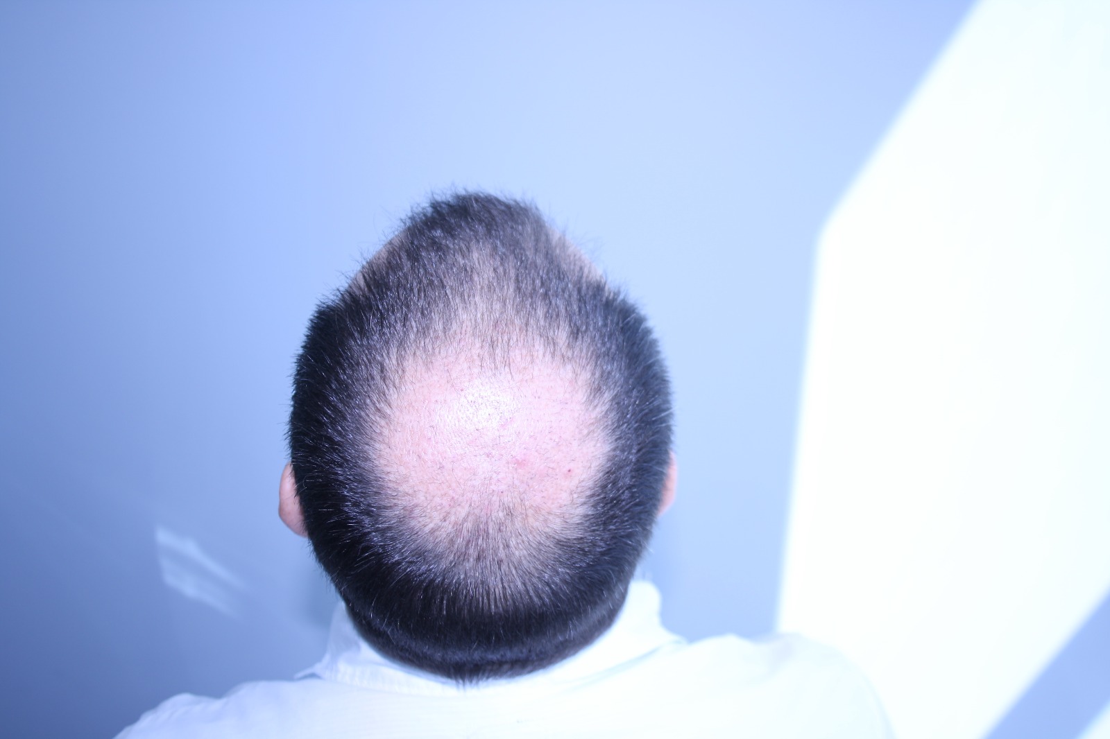 Haarausfall hat Anfang der 20er hinten in der Tonsur angefangen bis sich nun ein schöner Hubschrauberlandeplatz gebildet hat. Absolut kahl.