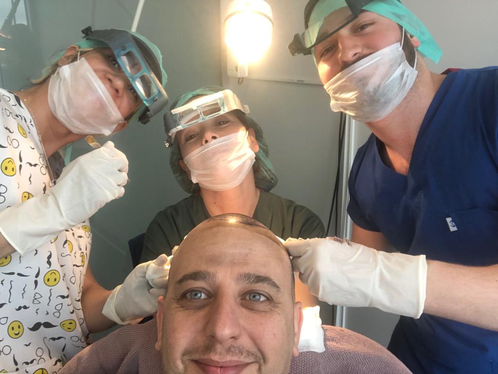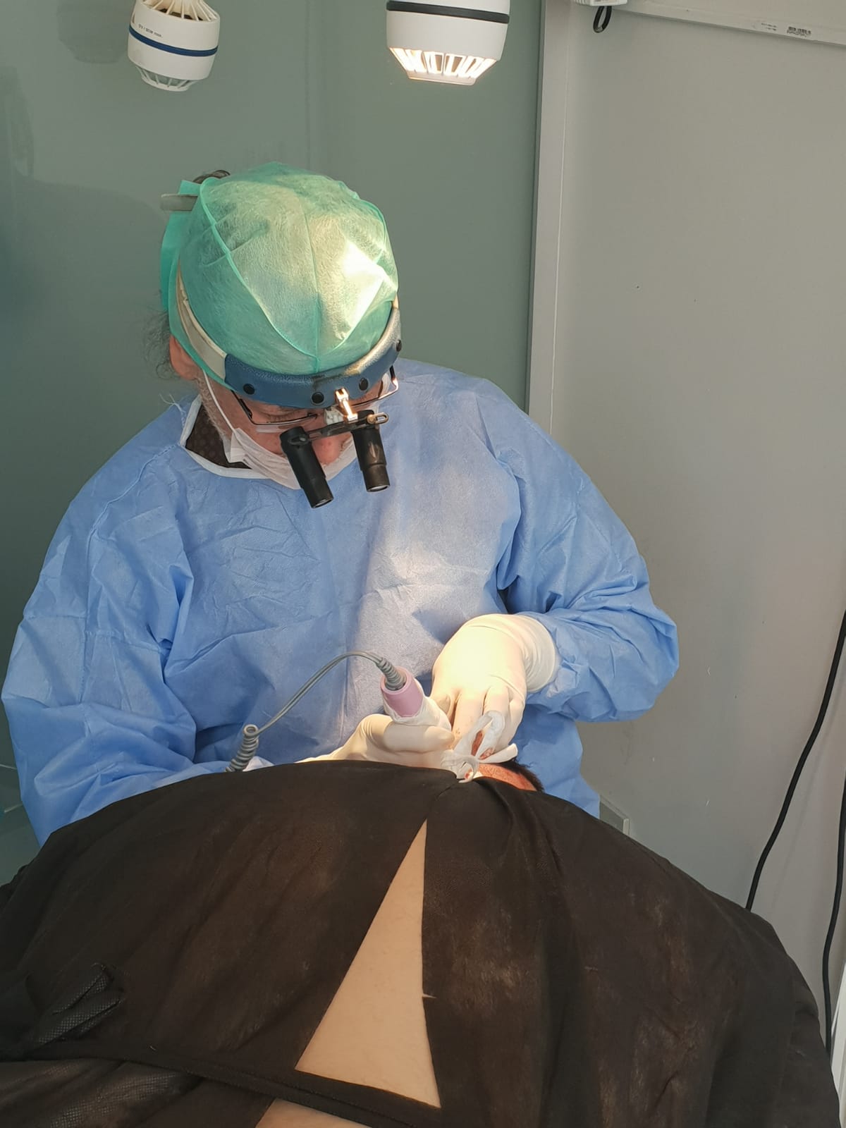Dr. Gür wird die OP an 2 Tagen durchführen. Entnahme und Kanäle macht er. Das Einpflanzen werden seine 3 Assistentinnen übernehmen.