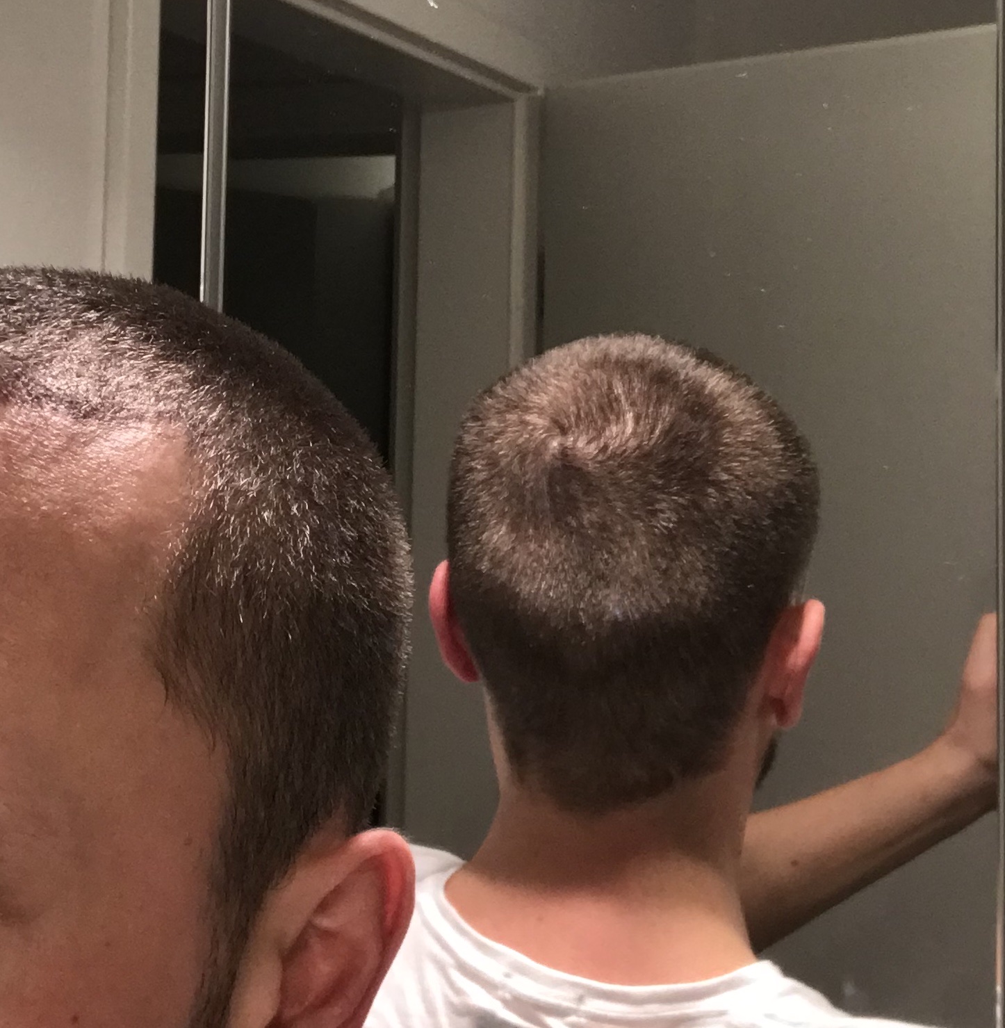 Mittlerweile gefallen mir die kurzen Haare sehr gut, sodass ich in der nächsten Zeit immer alles auf 4-5 mm abrasieren werde. Bekomme für die Kurzhaarfrisur häufig gutes Feedback und habe daher keinen Stress damit, dass jetzt ganz schnell wieder alles voll wird da oben.