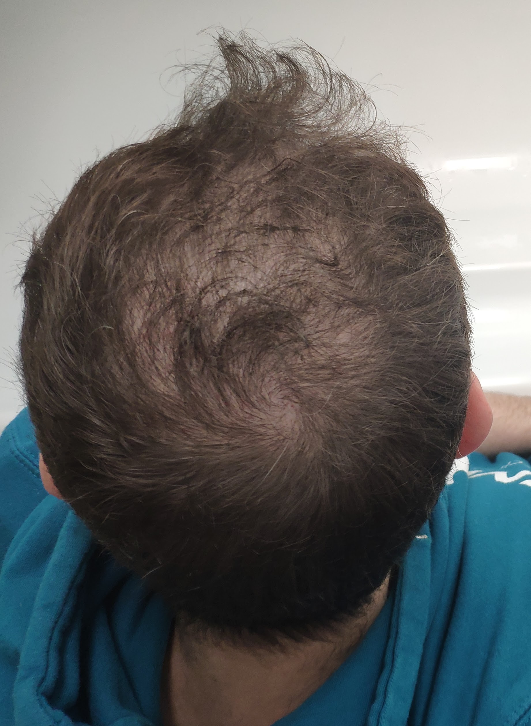 Wenn du mittelfristig dran bleibst, könnte Minox Foam 1x täglich eine Überlegung wert sein. Außerdem wirken deine Haare auf den Bildern oft etwas ölig/fettig. Evtl. Sebo-AGA. Könntest optisch durch Ketozolin 2% 1-2 mal wöchentlich (gut einwirken lassen) vielleicht auch noch etwas rausholen.