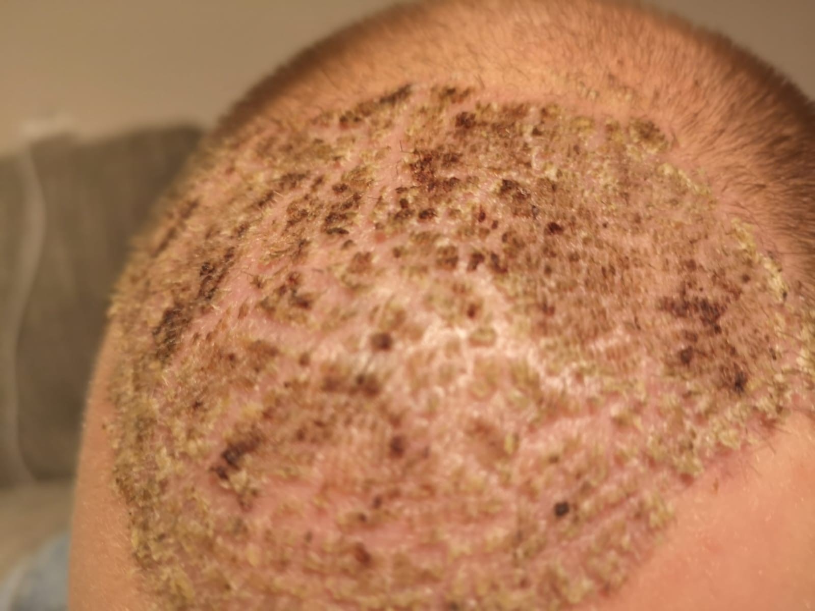 Kann mir jemand einen Ratschlag geben, wie ich die Krusten am besten entferne und auch nochmal zur Sicherheit bestätigen, dass es sich nur um Haut und nicht die Grafts handelt?