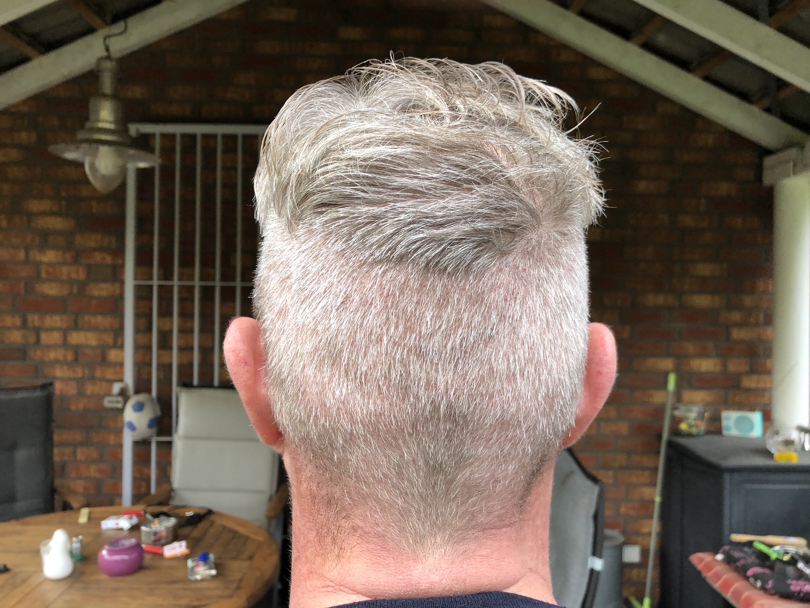 Bedingt durch die Geheimratsecken trage ich mein Haar seit Mitte 20 platt am Kopf anliegend nach vorn mit leicht gescheitelter Tolle. Das hat sich früh als relativ vorteilhaft erwiesen, geht mir aber nach all der Zeit allmählich auf die Nerven und ich wär gern wieder ein bisschen flexibler in der Wahl meiner Frisur. Ausserdem ist der 3-4 wöchige Gang zum Friseur jedes mal ein echter Drahtseilakt.