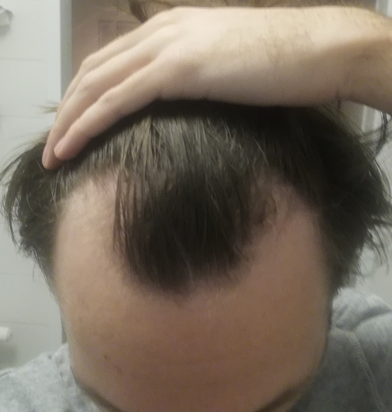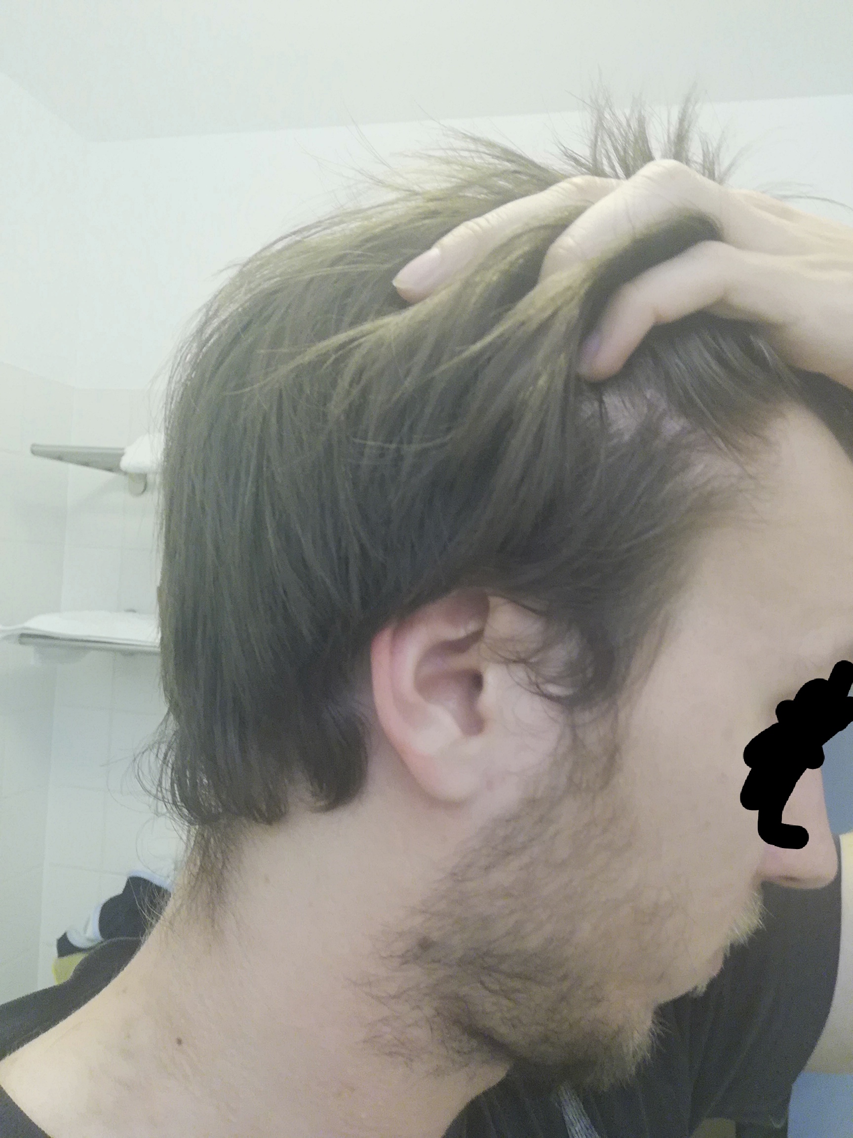 Ich hab starke Geheimratsecken und kann mir schon lange keine richtigen Frisuren stylen. Bin 29 Jahre alt, nehme keine Medikamente.
