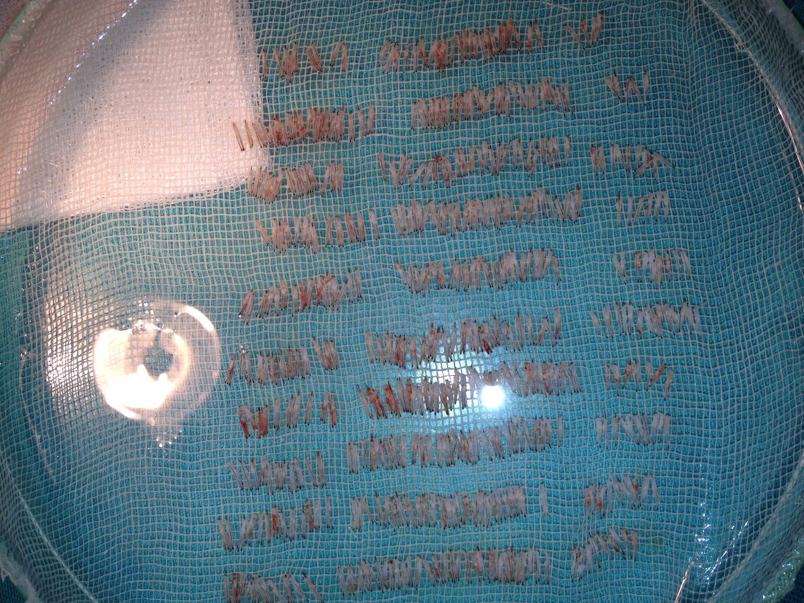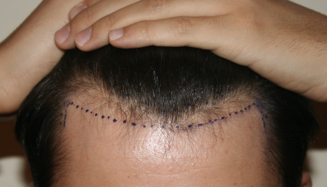 Die kleinen Schnitte, in die die Grafts eingesetzt werden...