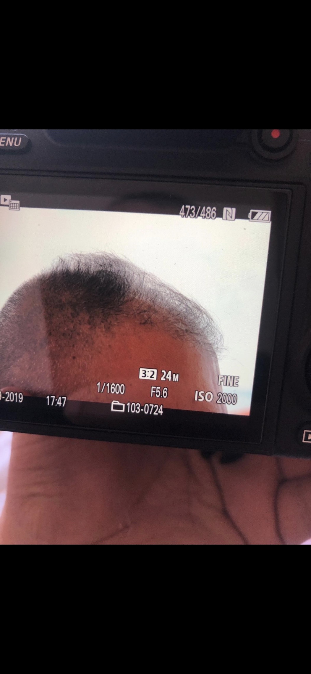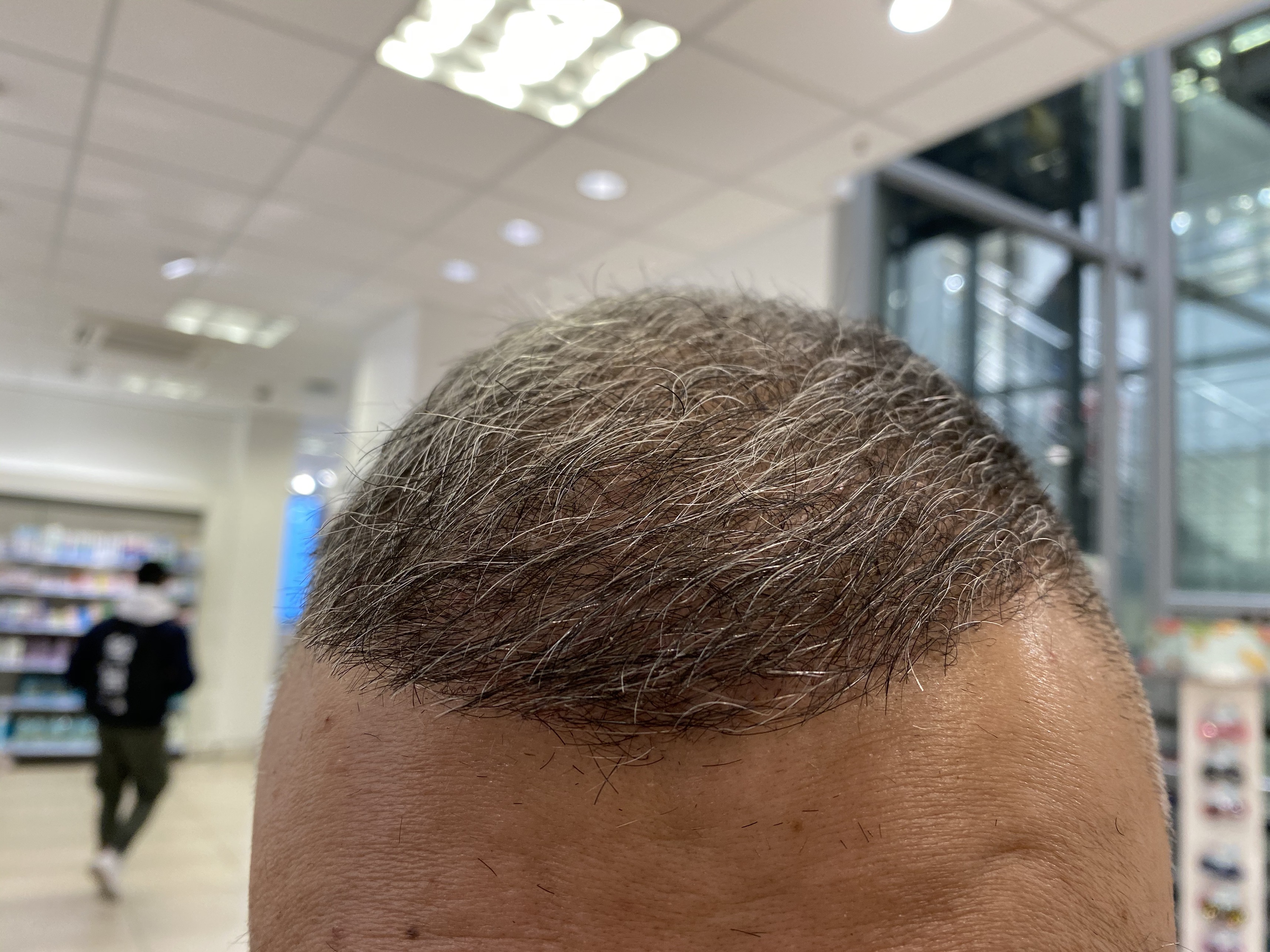 Schaut euch mal den Vergleich an. Vor der OP und jetzt. Für mich sieht es so aus als wäre nur der transplantierte Bereich lichter geworden.