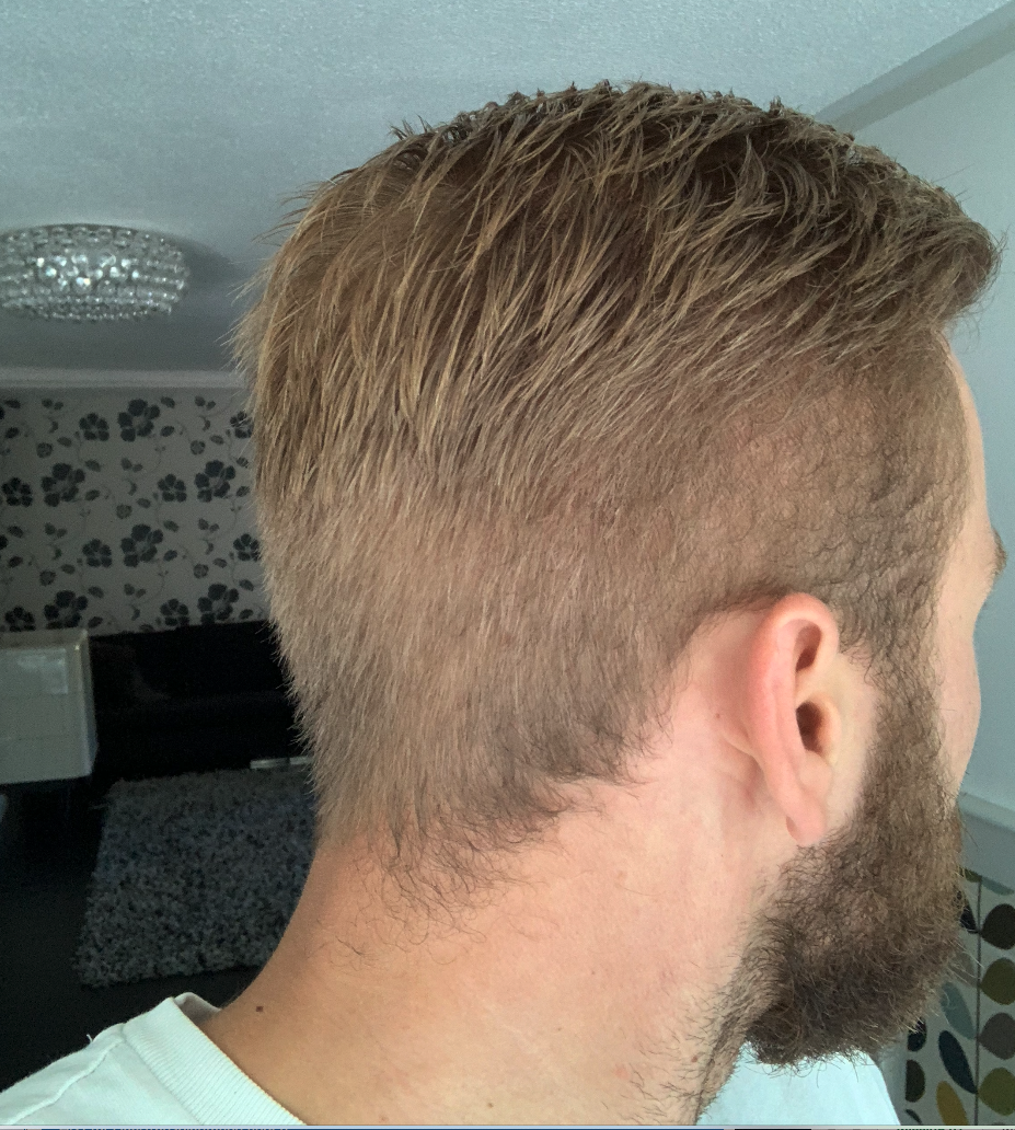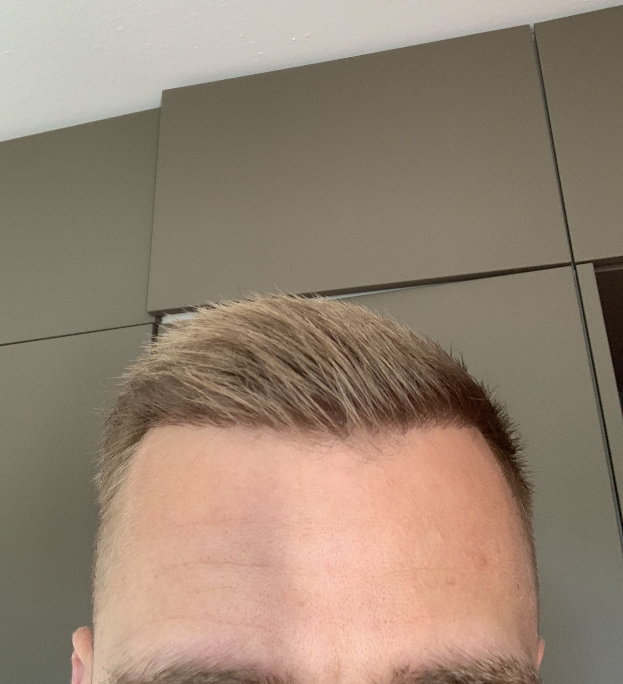7-8 Monate nach meiner HT bei Serkan Aygin und schon ein Bild das aussagekräftig genug ist. Das Foto wurde nicht bearbeitet und habe lediglich Haarwax verwendet. Wie das Licht auf die Haare fällt, aus welchem Winkel man sie sieht und vorallem Stress haben bei mir einen riesen Einfluss!