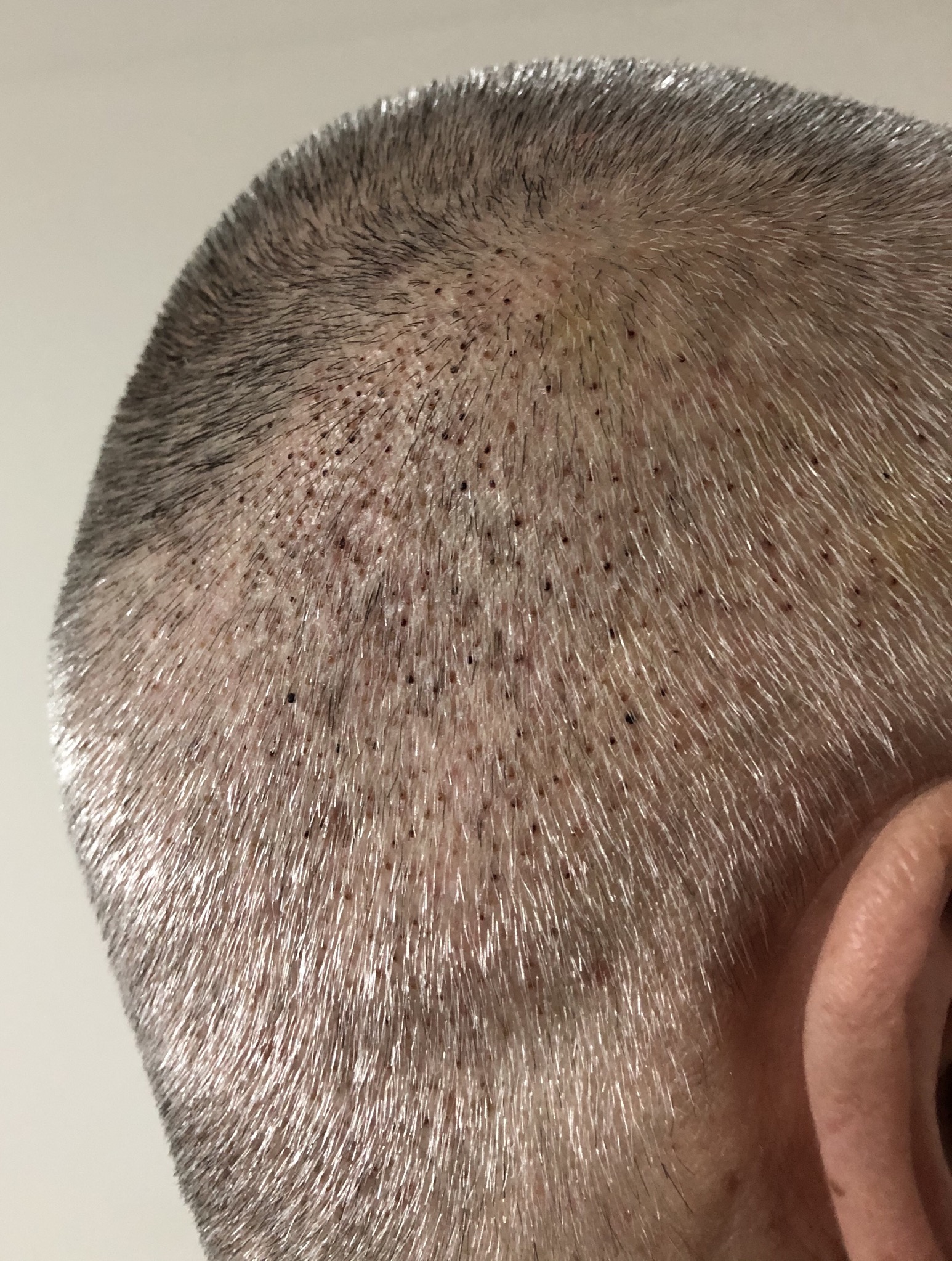 Nur als Info, es wurden mehr Grafts hinten als auf den Seiten entnommen, da dort anscheinend mehr Haare vorhanden waren. Dr. Feriduni dachte anhand der Fotos, dass ich zwischen 1600-2200 Gafts benötige, nach der Voruntersuchung lag er bei ca. 1700-1800, letztendlich wurden es aber 2313 Grafts. Mir wurde als Laie gesagt, dass man das erst sieht wenn der Kurzhaarschnitt gemacht wurde.