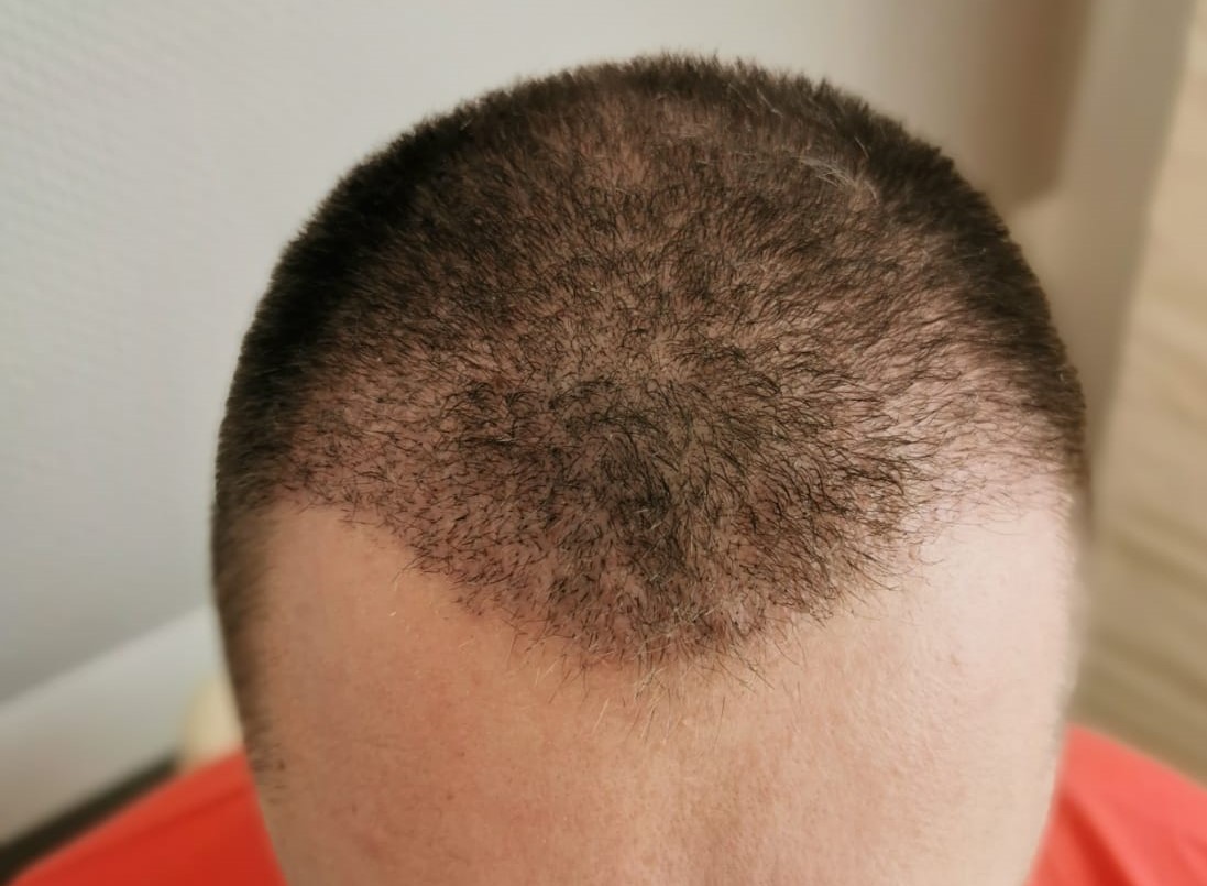 Die konkrete Frage ist jetzt, kann man jetzt schon sagen, dass da wirklich garnichts wächst, oder ist eventuell das Haar rausgefallen und man sieht nur noch kein weiteres nachkommen so wie man es bei anderen ganz kurzen Stopopeln erkennen kann? Oder ist das jetzt einfach eine recht schlechte Dichte?