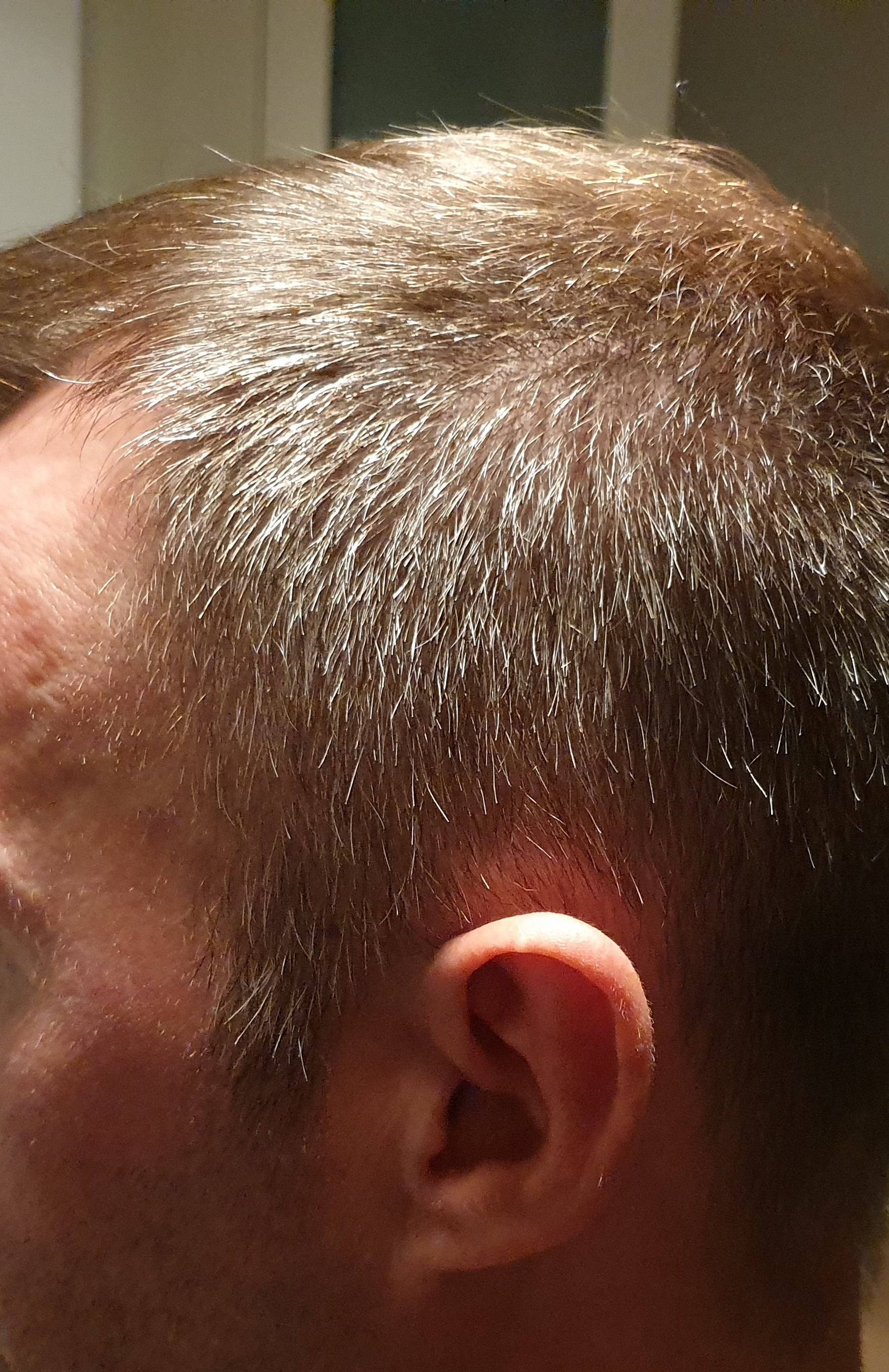 Hier wurde hauptsächlich von den Seiten entnommen und es wurden die Schläfen verdichtet sowie die Tonsur aufgefüllt.