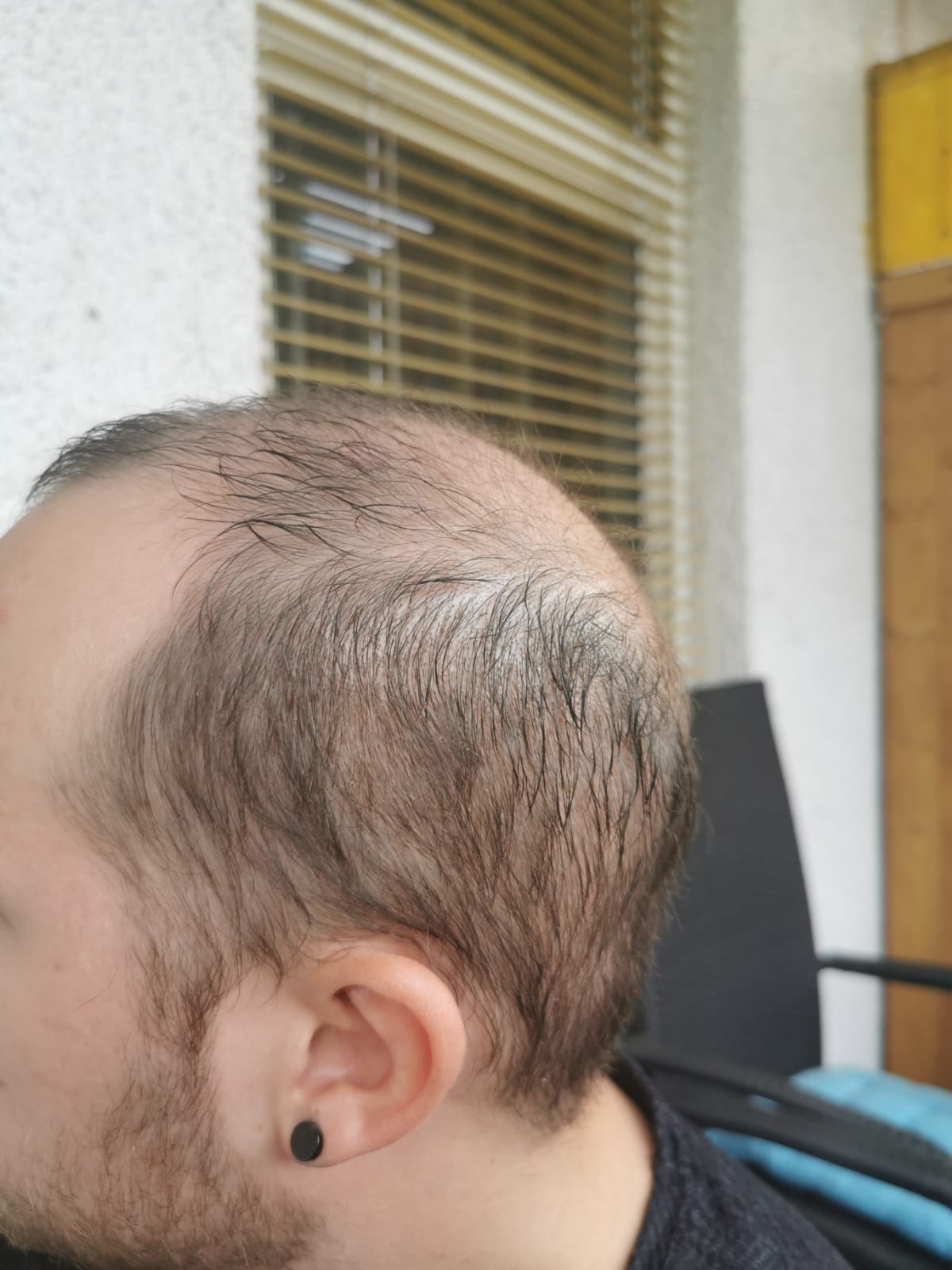 Ich muss allerdings sagen: Aus meiner Sicht hättest du lieber keine HT machen sollen (und schon gar nicht Zwei). Du scheinst ja auch noch relativ jung zu sein und dein Donor selbst wirkt sehr dünn (auch an den Seiten). Eventuell wäre es gut gewesen, in einer zweiten Runde nur die FUT Narbe zu bepflanzen, um auch in Zukunft kurze Haare zu ermöglichen.