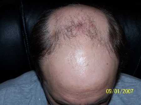 Resthaar hat er sicher keins verloren, hatte er nämlich nicht mehr (man siehe Vorher-Fotos). Dann bleibt noch, dass bis jetzt nicht alle Haare, die verplfanzt wurden, wachsen. Dagegen spricht, dass DaVincis Freundin angeblich 60 Grafts pro cm2 zählt. Was kann es dann sein? Zwei Sachen fallen mir spontan ein: