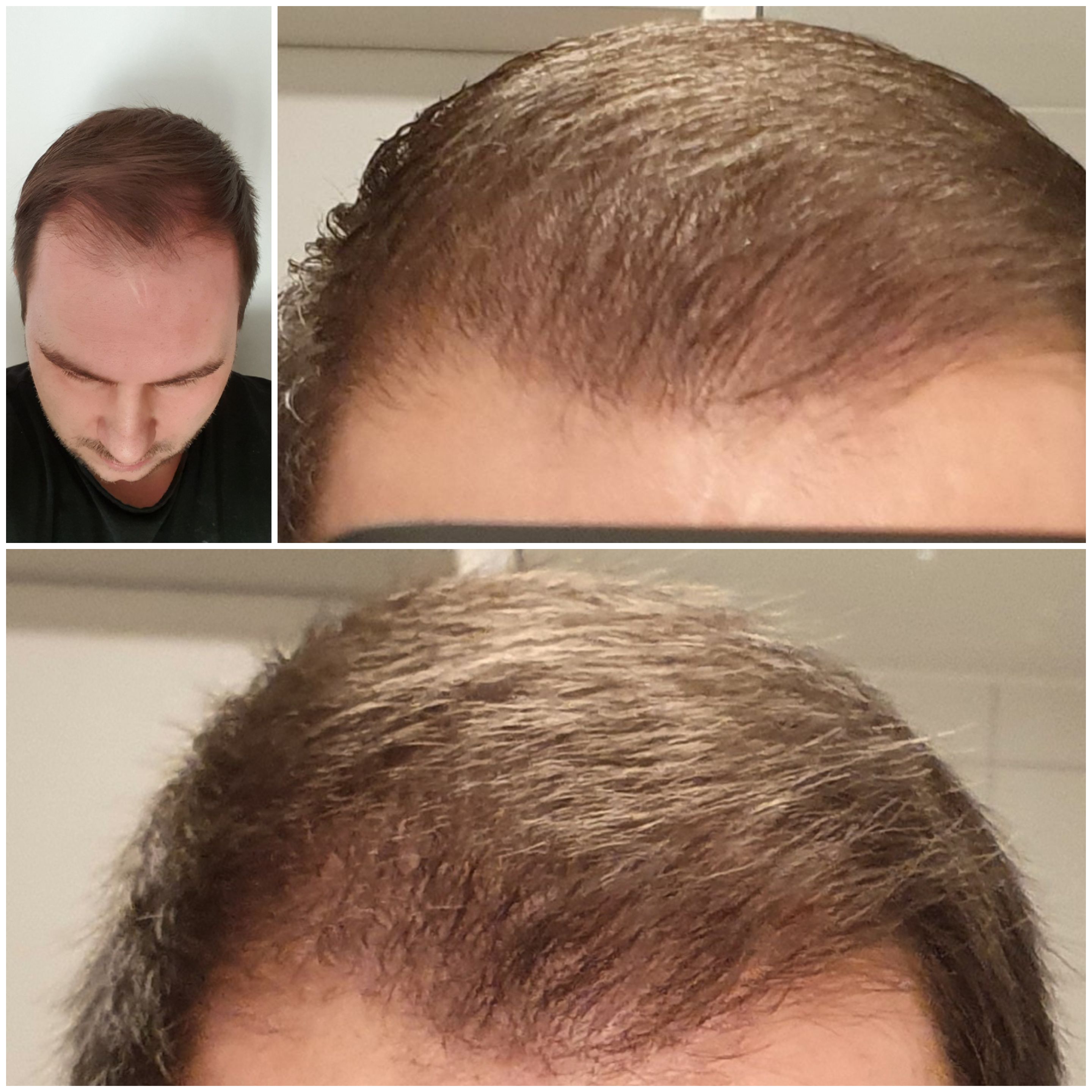 Morgens das Serum von der Klinik drauf und abends Minoxidil (noch ein Monat und dann auf 2 mal Wöchentlich Mi. + So.).