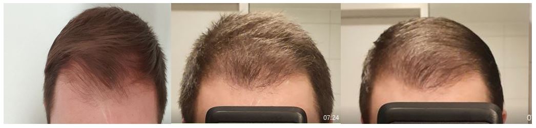 Man sieht noch deutlich die Kopfhaut, aber ich bin guter Dinge 🙂