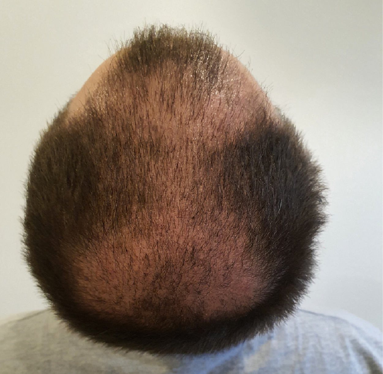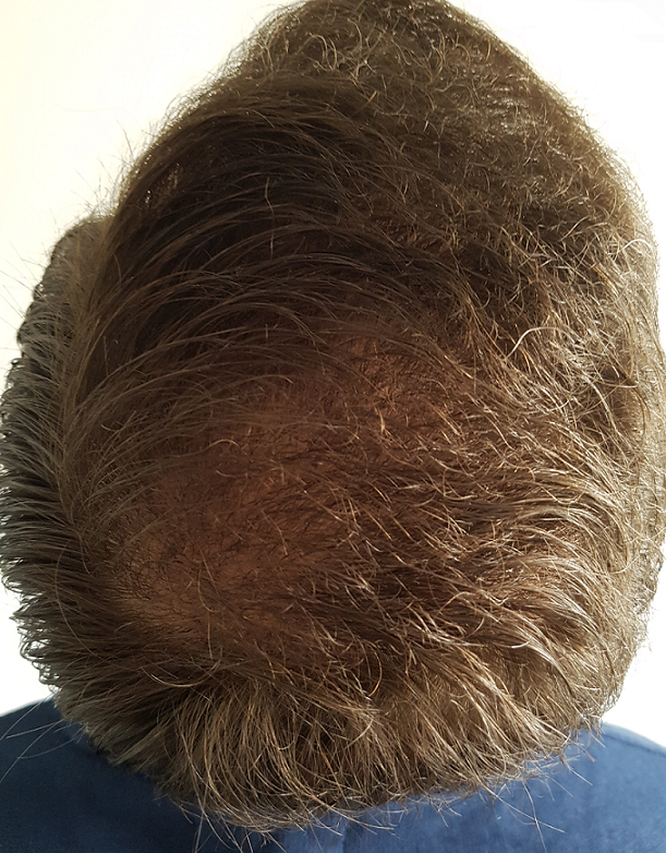 Ich bin 34 Jahre alt und habe braunes Haar. Meine Haare wurde vor 8-9 Jahren hinter dem Haaransatz immer dünner. Am Hinterkopf fing es vor 5 Jahren an, dafür rasanter. Geheimratsecken fingen irgendwann mit Anfang 20 an. Das hat mich aber nicht so sehr gestört, ist halt ein natürlicher Prozess. Schlimmer war der Haaransatz der einer verloren Insel glich.
