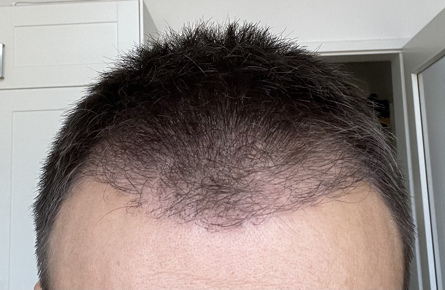 Ein Jahr ist rum. Ich habe gemischte Gefühle. Im Vergleich zur vorher sicher eine deutliche Verbesserung. Leider aber trotzdem nicht unbedingt mein Wunsch Ergebnis! Insbesondere meine linke Seite ist mir einfach nicht Dicht genug. Ich sehe definitiv hier und da noch Haare, die „neu“ dazukommen und meine Haare wachsen grundsätzlich sehr langsam aber wesentliche Veränderungen erwarte ich keine mehr. Auch ist es schwierig einzuschätzen wieviele Grafts denn jetzt gewachsen sind. Kurz nach der OP sahen die neuen Grafts aber deutlich dichter aus. Ich schätze es sind so 50-70% hängen geblieben … wie gesagt: schwer einzuschätzen.