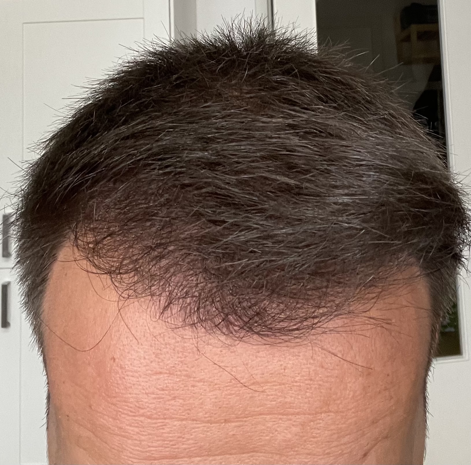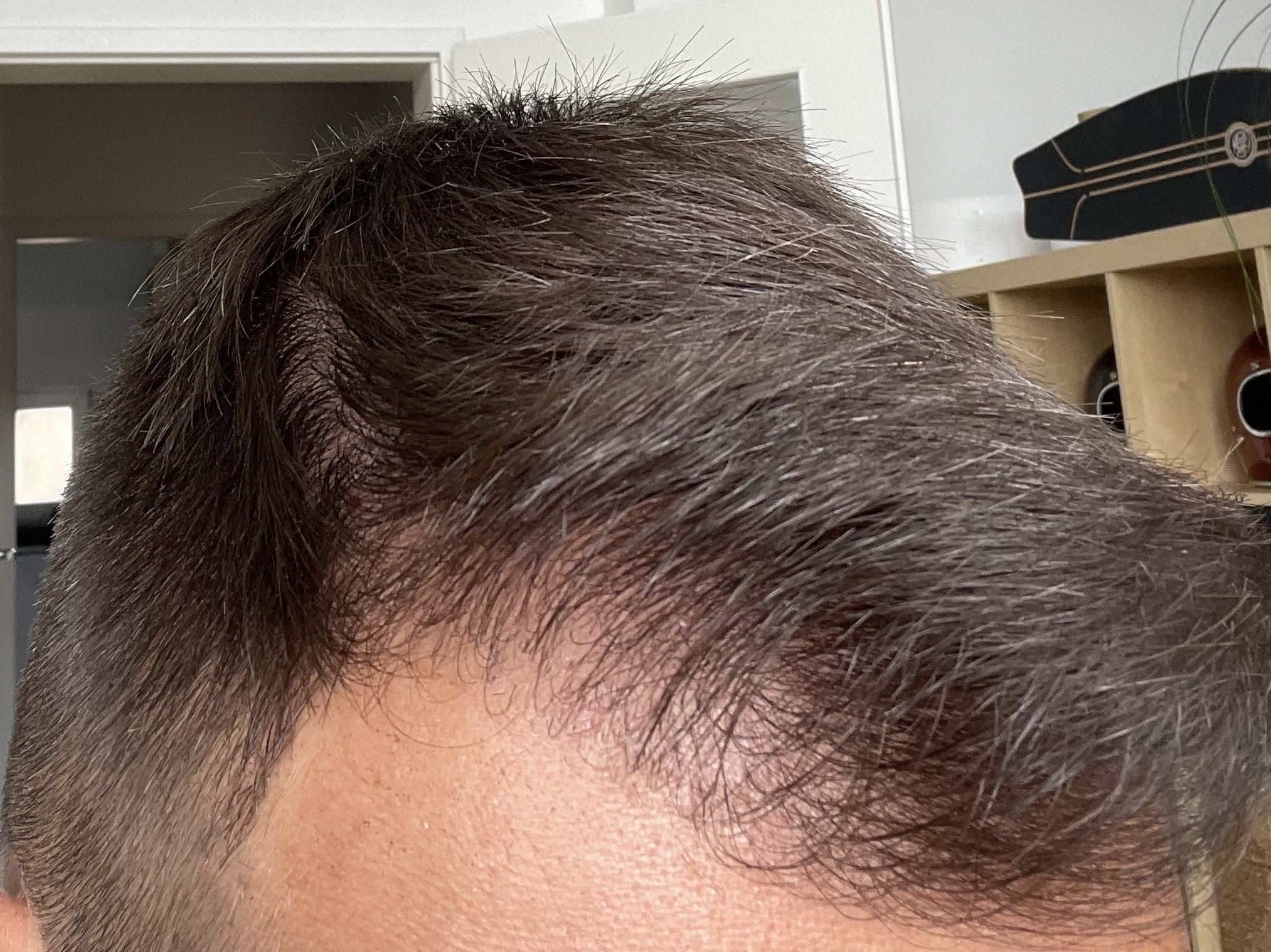 Ein Jahr ist rum. Ich habe gemischte Gefühle. Im Vergleich zur vorher sicher eine deutliche Verbesserung. Leider aber trotzdem nicht unbedingt mein Wunsch Ergebnis! Insbesondere meine linke Seite ist mir einfach nicht Dicht genug. Ich sehe definitiv hier und da noch Haare, die „neu“ dazukommen und meine Haare wachsen grundsätzlich sehr langsam aber wesentliche Veränderungen erwarte ich keine mehr. Auch ist es schwierig einzuschätzen wieviele Grafts denn jetzt gewachsen sind. Kurz nach der OP sahen die neuen Grafts aber deutlich dichter aus. Ich schätze es sind so 50-70% hängen geblieben … wie gesagt: schwer einzuschätzen.
